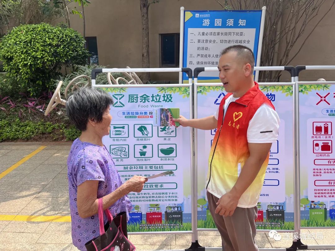活動(dòng)現(xiàn)場(chǎng),黨員干部、志愿者走進(jìn)社區(qū)向居民、家長和小朋友進(jìn)行宣傳,發(fā)放垃圾分類宣傳冊(cè),耐心向居民講解垃圾分類的重要性、垃圾分類類別、投放方式等知識(shí),為群眾普及了垃圾分類的重要意義和相關(guān)知識(shí),引導(dǎo)社區(qū)居民養(yǎng)成垃圾分類處理的良好習(xí)慣,自覺分類投放生活垃圾。
