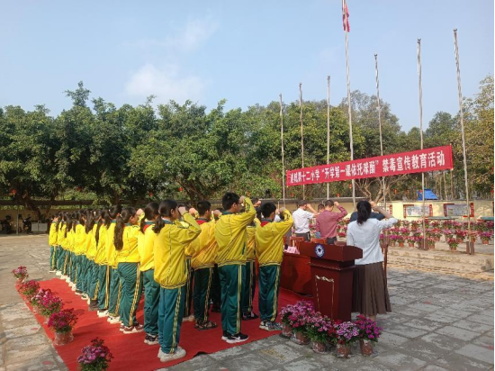 活動中,工作人員為全體師生普及毒品的相關(guān)知識,并指出毒品對我們生活的危害,宣傳遠(yuǎn)離毒品的方法,同時號召全校師生進(jìn)行禁毒宣誓,鏗鏘有力的禁毒誓詞體現(xiàn)了全體師生堅定不移的禁毒決心。