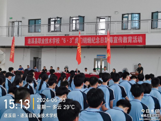 為持續(xù)推進(jìn)深化禁毒攻堅(jiān)行動(dòng),進(jìn)一步做好未成年人毒品預(yù)防教育工作,向未成年普及防范毒品知識(shí),6月3日下午,縣城綜局會(huì)同遂城街道辦、縣煙草局、縣教育局、 縣人社局、縣人民法院、縣禁毒大隊(duì)、遂城派出所等單位到遂溪縣職業(yè)技術(shù)學(xué)校舉行“6.3”虎門銷煙紀(jì) 念日禁毒宣傳教育活動(dòng),遂溪縣委常委、宣傳部部長(zhǎng)、遂城街道黨工委書記豆萍英,遂城街道黨工委副書記、主任 龍輝出席活動(dòng),遂城街道黨工委副書記鄧雄東主持活動(dòng)。開(kāi)展“6.3”虎門銷煙紀(jì)念日禁毒宣傳活動(dòng)。