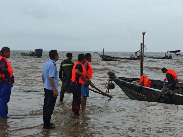 面對(duì)隨時(shí)可能被風(fēng)浪吞噬的漁民,現(xiàn)場(chǎng)民警沒(méi)有絲毫猶豫,立即聯(lián)動(dòng)江洪鎮(zhèn)政府相關(guān)部門(mén)火速展開(kāi)救援行動(dòng)。“漁船固然重要,但生命無(wú)價(jià),請(qǐng)立即上岸!”民警們頂著風(fēng)雨,在堤岸上竭力呼喊勸阻。面對(duì)漁民護(hù)船的急切心情,民警與鎮(zhèn)干部動(dòng)之以情、曉之以理,反復(fù)強(qiáng)調(diào)當(dāng)前極端天氣的巨大風(fēng)險(xiǎn),同時(shí)迅速協(xié)調(diào)應(yīng)急力量在岸邊做好接應(yīng)防護(hù)準(zhǔn)備。經(jīng)過(guò)多方耐心疏導(dǎo)與果斷處置,短短十分鐘內(nèi),所有涉險(xiǎn)漁民被安全帶離怒海,成功實(shí)現(xiàn)轄區(qū)漁民“零傷亡”的硬核守護(hù)。