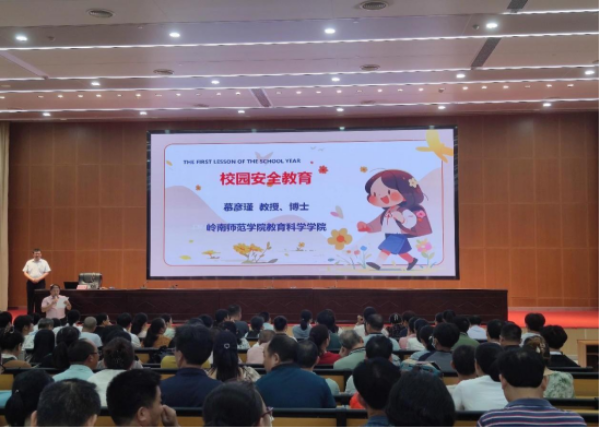 培訓會上,嶺南師范學院慕彥瑾教授圍繞校園交通安全、防火防災(zāi)、防范校園欺凌、防范網(wǎng)絡(luò)欺詐等方面,結(jié)合視頻展示,生動細致地對如何通過安全教育培養(yǎng)學生自我保護意識作了講解和剖析。培訓內(nèi)容緊密結(jié)合教學實際,系統(tǒng)全面、重點突出,進一步明晰了教師在開展校園安全教育中遇到的難點和困惑,為解決實際工作提供了寶貴的參考經(jīng)驗。