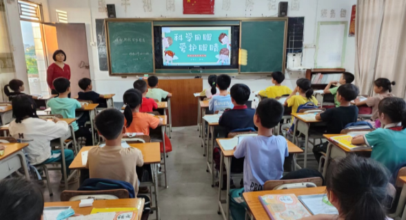 通過(guò)“開(kāi)學(xué)第一課”“主題班會(huì)課”等形式,向?qū)W生講解近視的危害和科學(xué)用眼的重要性,科普近視防控的基本知識(shí),提高全體師生的愛(ài)眼護(hù)眼意識(shí)。積極發(fā)揮學(xué)校健康教育主陣地作用,將近視防控知識(shí)融入課堂教學(xué)、校園文化和中小學(xué)生日常行為規(guī)范中,通過(guò)健康教育課程、專(zhuān)家講座、主題班會(huì)、班團(tuán)隊(duì)日、校園廣播、宣傳欄等渠道和形式,深入開(kāi)展科學(xué)用眼護(hù)目宣傳教育,引導(dǎo)兒童青少年切實(shí)增強(qiáng)愛(ài)眼護(hù)眼意識(shí),提升視力健康知識(shí)知曉率和用眼行為改進(jìn)率。活動(dòng)期間,全縣學(xué)??偣查_(kāi)展以“有效減少近視發(fā)生,呵護(hù)孩子光明未來(lái)”為主題的班會(huì)486次,上健康教育課1085節(jié),校園廣播2650次左右;并通過(guò)張掛橫幅、出宣傳欄加強(qiáng)宣傳。