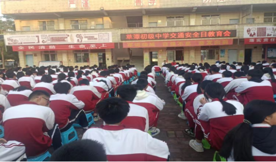 ?。▓D為草潭初級中學(xué)召開交通安全日主題校會)