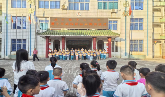(圖為城月鎮(zhèn)中心小學(xué)舉行遵守交通規(guī)則標(biāo)兵頒獎儀式)