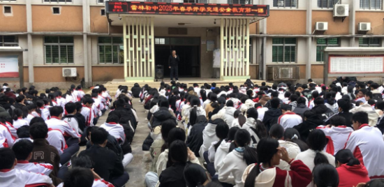 ?。▓D為雷林初中舉辦2025年春季開學交通安全第一課)