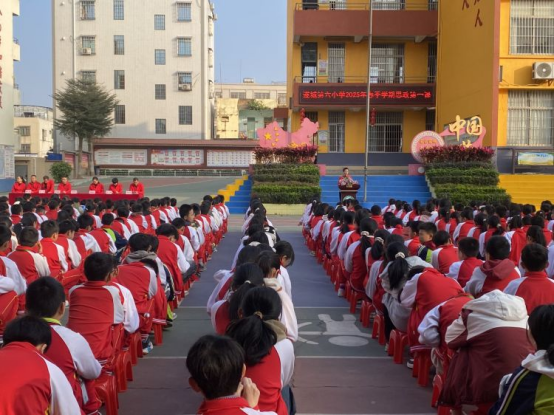 ?。▓D為遂城第六小學舉行2025年春季學期思政第一課)