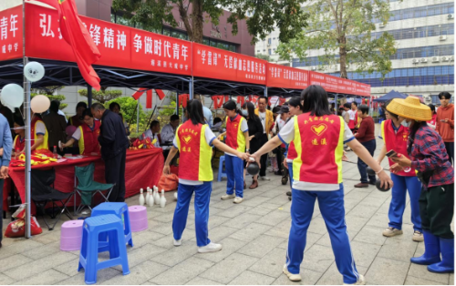 在各學(xué)校的攤位前,互動(dòng)活動(dòng)開展得熱火朝天。善意紙飛機(jī)傳遞溫暖、垃圾分類普及環(huán)保知識(shí)、有獎(jiǎng)競猜提升教育認(rèn)知,扔沙包、保齡球等傳統(tǒng)游戲也吸引眾多參與者。