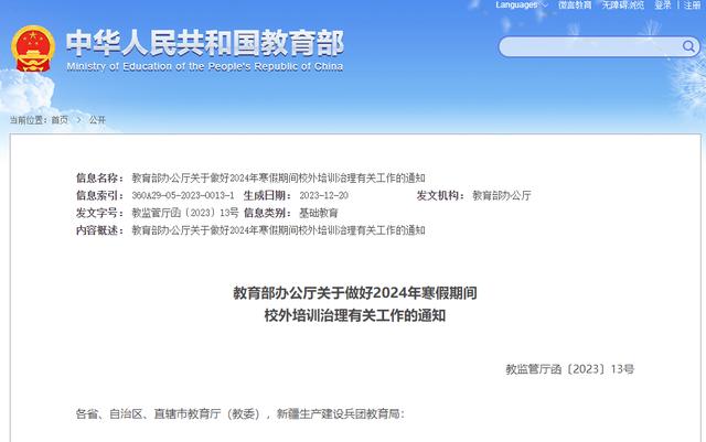 寒假將至,為進一步鞏固校外培訓治理成效,嚴防學科類培訓隱形變異,強化非學科類培訓監(jiān)管,切實減輕中小學生校外培訓負擔,讓廣大中小學生度過一個平安祥和、豐富充實、輕松愉快的假期,近日,教育部印發(fā)通知,部署各地教育行政部門認真做好寒假期間校外培訓治理工作,明確要嚴厲打擊以“家政服務”“眾籌私教”“游學研學”“冬令營”等名義進行變相違規(guī)培訓等。