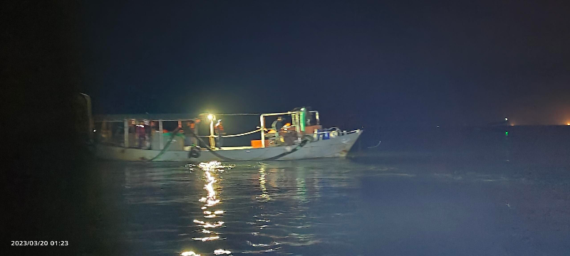3月19日晚,根據(jù)群眾線索舉報,遂溪縣海洋綜合執(zhí)法大隊派出中國漁政44253艇,人員7名,在樂民對開海域查扣兩艘?guī)в谐槁葑鳂I(yè)工具漁船3艘,目前正扣押回草潭港途中。