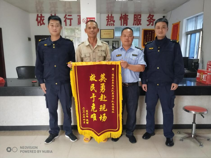 4月27日下午,港門鎮(zhèn)樓仔村漁民黃先生來到草潭中隊,熱情送上“英勇赴現(xiàn)場、救民于危難”錦旗,表達對縣海洋綜合執(zhí)法大隊及時救助漁民的感激之情。