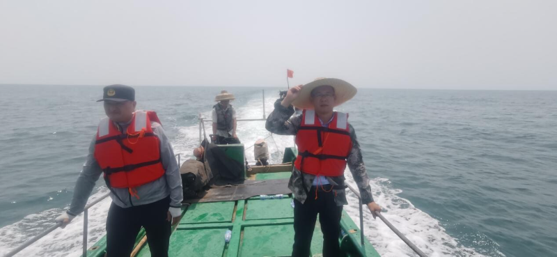 5月21日11時21分,江洪中隊值班人員收到江洪鎮(zhèn)漁民繆國賢家屬的求救電話,繆國賢駕駛南海免休漁船粵遂漁13168出海釣魚(東經(jīng)109°32′,北緯21°07′),由于漁船機器損壞導(dǎo)致漁船失去動力,2人被困海上。收到求助信息后,江洪鎮(zhèn)黨委副書記梁勝與江北村黨支部書記康建國迅速帶領(lǐng)中隊及相關(guān)人員出海救援,在救援過程中,救援人員積極與遇險求助人保持聯(lián)系,確保被困漁民精神狀態(tài)良好,并提醒遇險人員要穿好救生衣、戴上游泳圈,做好安全保障措施。經(jīng)過救援人員的努力,于16時48分成功救助全部被困人員。
