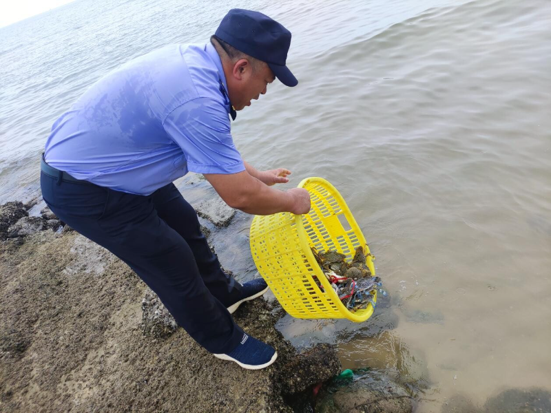 遂溪縣海洋綜合執(zhí)法大隊(duì)不定期對(duì)江洪、樂民等沿海鎮(zhèn)海埠收蟹點(diǎn)進(jìn)行南海伏季休漁執(zhí)法巡查,巡查中發(fā)現(xiàn)檔口有鮮活的梭子蟹,確認(rèn)是違反休漁期規(guī)定捕撈所得,經(jīng)過執(zhí)法人員的批評(píng)教育和普及相關(guān)法律知識(shí),各相關(guān)檔主均積極配合執(zhí)法人員放生梭子蟹。