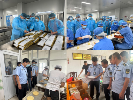 9月29日,遂溪縣市場監(jiān)督管理局三級(jí)主辦陳福助帶領(lǐng)協(xié)調(diào)應(yīng)急股、食品生產(chǎn)股、食品市場股、食品餐飲股及嶺北市場監(jiān)管所、城月市場監(jiān)管所工作人員,到嶺北廣匯超市、御唐府藍(lán)罐蓮蓉餅業(yè)公司、御唐府生態(tài)農(nóng)莊、沈海高速遂溪服務(wù)區(qū)、城月聚寶樓月餅等節(jié)日人流量大的生產(chǎn)經(jīng)營單位開展食品安全專項(xiàng)監(jiān)督檢查,全力保障百姓“舌尖上的安全”。