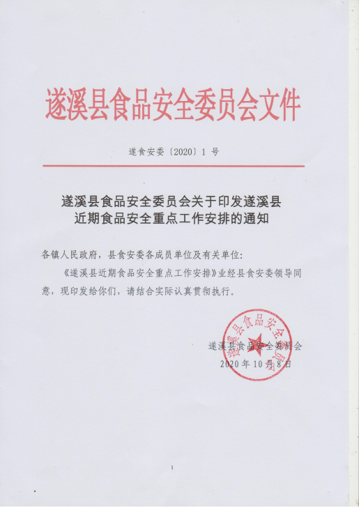 遂溪縣食品安全委員會關于印發(fā)遂溪縣近期食品安全重點工作安排的通知