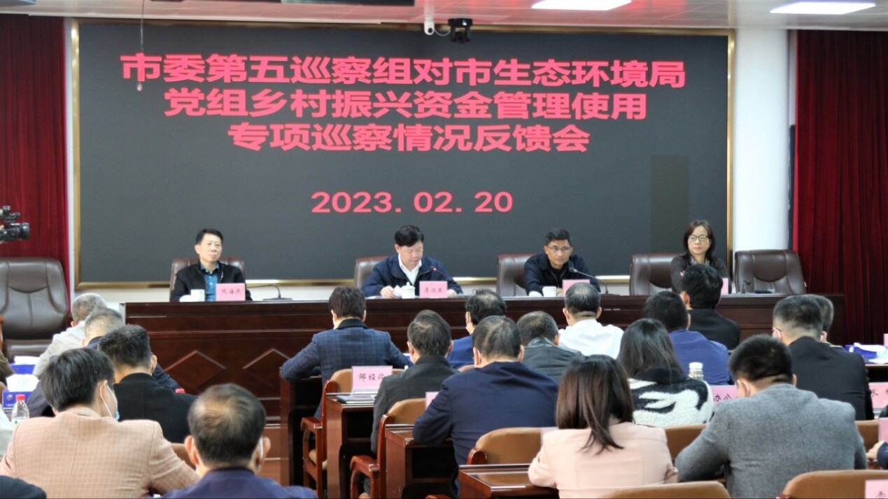 根據(jù)市委巡察工作統(tǒng)一部署,經(jīng)市委批準(zhǔn),2月20日,市政府黨組成員、副市長,湛江經(jīng)開區(qū)黨委書記,奮勇高新區(qū)黨委書記李漢東率市委第五巡察組,向市生態(tài)環(huán)境局黨組反饋鄉(xiāng)村振興資金管理使用專項(xiàng)巡察情況,對巡察整改工作提出要求。市委第五巡察組組長阮海燕反饋巡察發(fā)現(xiàn)的問題并提出意見建議。市政協(xié)副主席、市生態(tài)環(huán)境局黨組書記、局長關(guān)卉作表態(tài)發(fā)言。