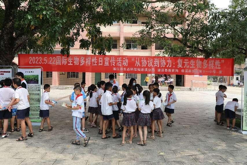 為進(jìn)一步提高小學(xué)生對(duì)保護(hù)生物多樣性的認(rèn)識(shí),引導(dǎo)小學(xué)生積極參與到生物多樣性保護(hù)中來(lái),2023年5月22日上午,湛江市生態(tài)環(huán)境局遂溪分局、遂溪縣教育局、遂溪縣遂城十一小學(xué)環(huán)保志愿者聯(lián)合在遂溪縣遂城十一小學(xué)開(kāi)展“從協(xié)議到協(xié)力:復(fù)元生物多樣性”2023年國(guó)際生物多樣性日主題宣傳活動(dòng)。