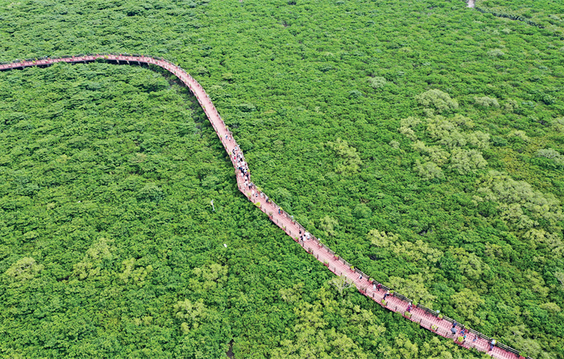 推動綠色發(fā)展,建設(shè)生態(tài)文明,重在建章立制。近年來,廣西北侖河口國家級自然保護區(qū)所在的廣西防城港市建立紅樹林精細“管、護、研”一體化工作機制,全面開展巡護管理、科研監(jiān)測、宣傳教育、社區(qū)共管、生態(tài)修復等各項工作,有效推動紅樹林生態(tài)系統(tǒng)質(zhì)量全面提升。圖為2024年8月24日拍攝的廣西北侖河口國家級自然保護區(qū)的紅樹林。 新華社記者 陸波岸/攝