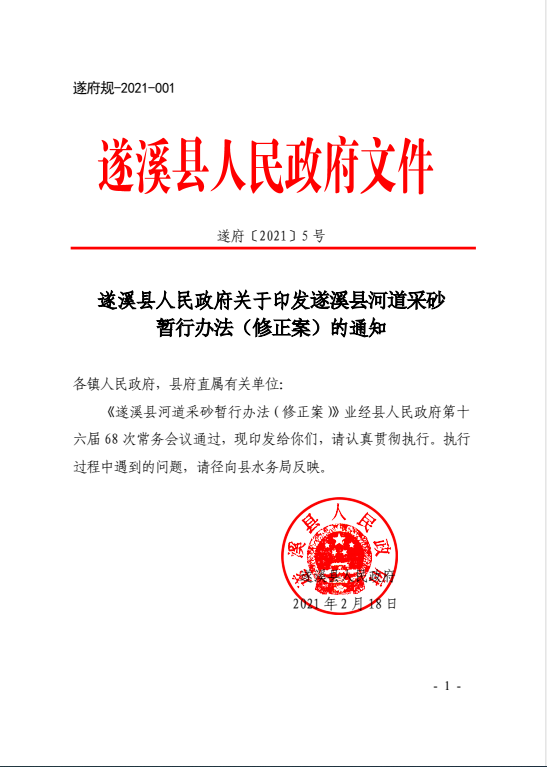 關(guān)于印發(fā)遂溪縣河道采砂暫行辦法(修正案)的通知