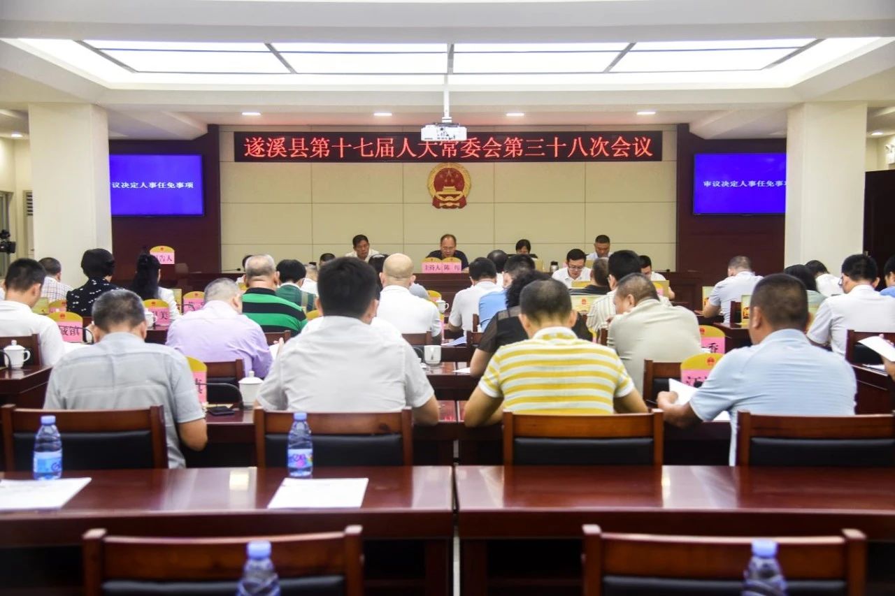 9月19日,遂溪縣第十七屆人大常委會召開第三十八次會議??h人大常委會黨組副書記、代主任陳輝主持會議??h人大常委會副主任陳林英、陳日勝、揭盛等28名組成人員出席會議。