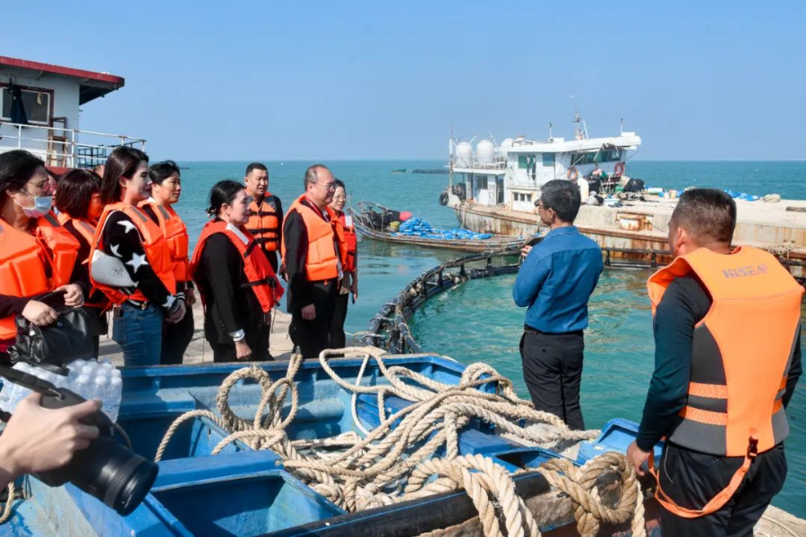 代表們先后實(shí)地察看楊柑鎮(zhèn)“百千萬(wàn)工程”典型鎮(zhèn)推進(jìn)情況、湛江富洋水產(chǎn)有限公司海洋牧場(chǎng)深水網(wǎng)箱金鯧魚(yú)養(yǎng)殖收獲實(shí)況、遂溪新海茂水產(chǎn)種業(yè)科技有限公司對(duì)蝦種業(yè)發(fā)展情況。現(xiàn)場(chǎng)視察結(jié)束后,代表們召開(kāi)座談會(huì),就楊柑鎮(zhèn)“百千萬(wàn)工程”工作推進(jìn)情況、海洋牧場(chǎng)、養(yǎng)殖種業(yè)等工作進(jìn)行交流探討。