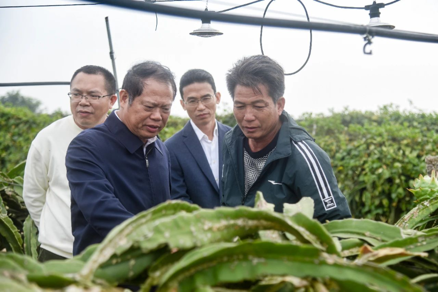 調研組首先到楊柑鎮(zhèn)海英火龍果種植專業(yè)合作社實地調研,現(xiàn)場與工作人員交流,詳細了解火龍果的種植規(guī)模、品種特性、生產管理以及銷售渠道等情況。調研組對合作社在火龍果種植方面取得的成績表示肯定,指出要進一步發(fā)揮地域優(yōu)勢,加強技術投入,提高火龍果品質,通過品牌建設提高產品附加值,增強市場競爭力。