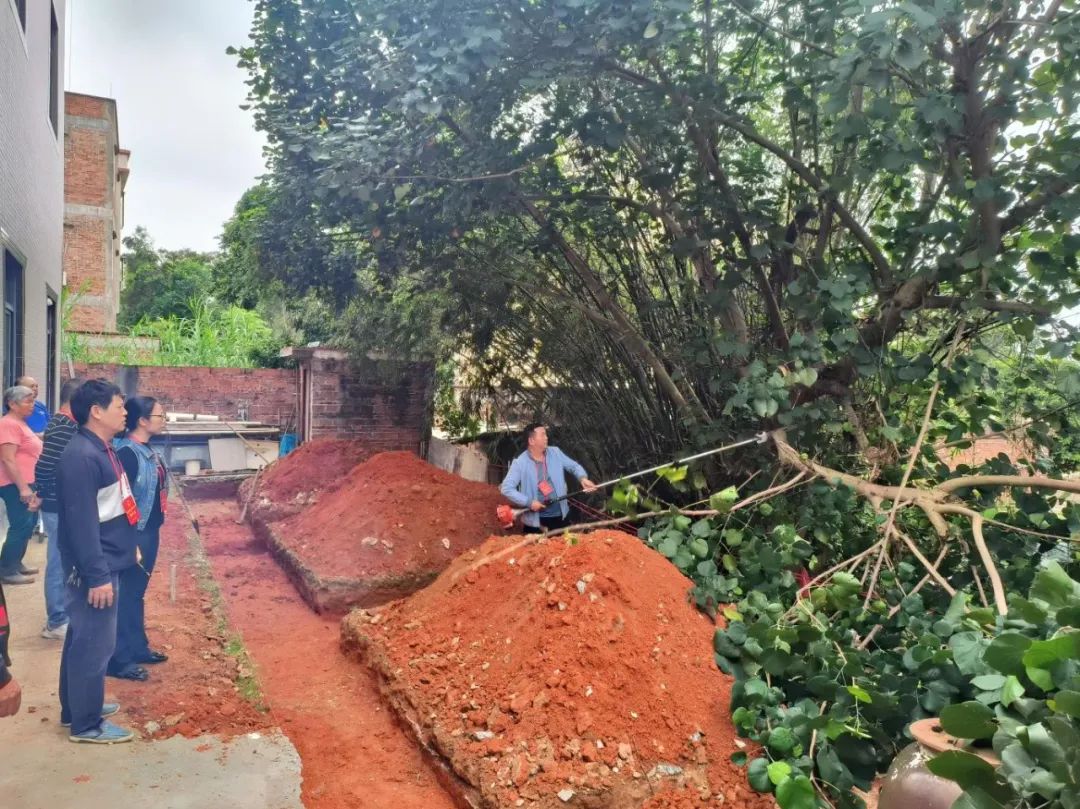 代表們在走訪選民群眾活動中,居住在南坡圩附近的謝叔反映:“我們家后院的圍墻外的大樹長得太高大、太茂盛,遮光、引蟲,大樹主桿已經(jīng)斜向我家后院,給我們家?guī)砹藰O大的安全隱患,可不可以修剪一下?”
