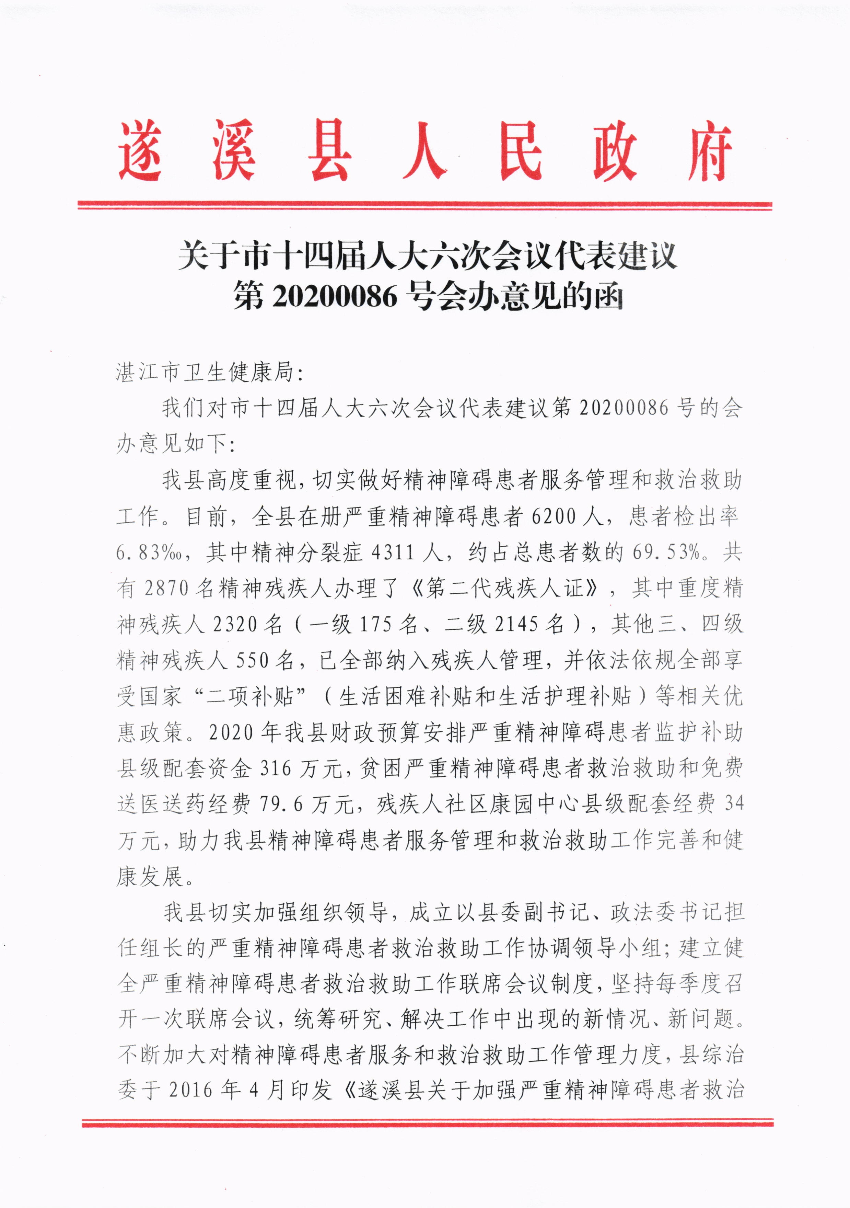 關(guān)于市十四屆人大六次會(huì)議代表建議第20200086號(hào)會(huì)辦意見(jiàn)的函