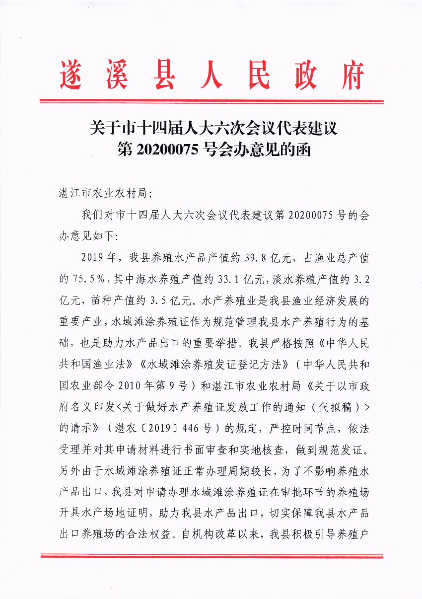 關(guān)于市十四屆人大六次會(huì)議代表建議第20200075號(hào)會(huì)辦意見的函