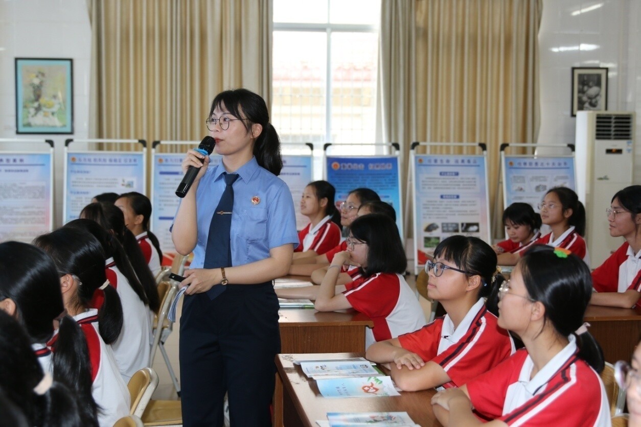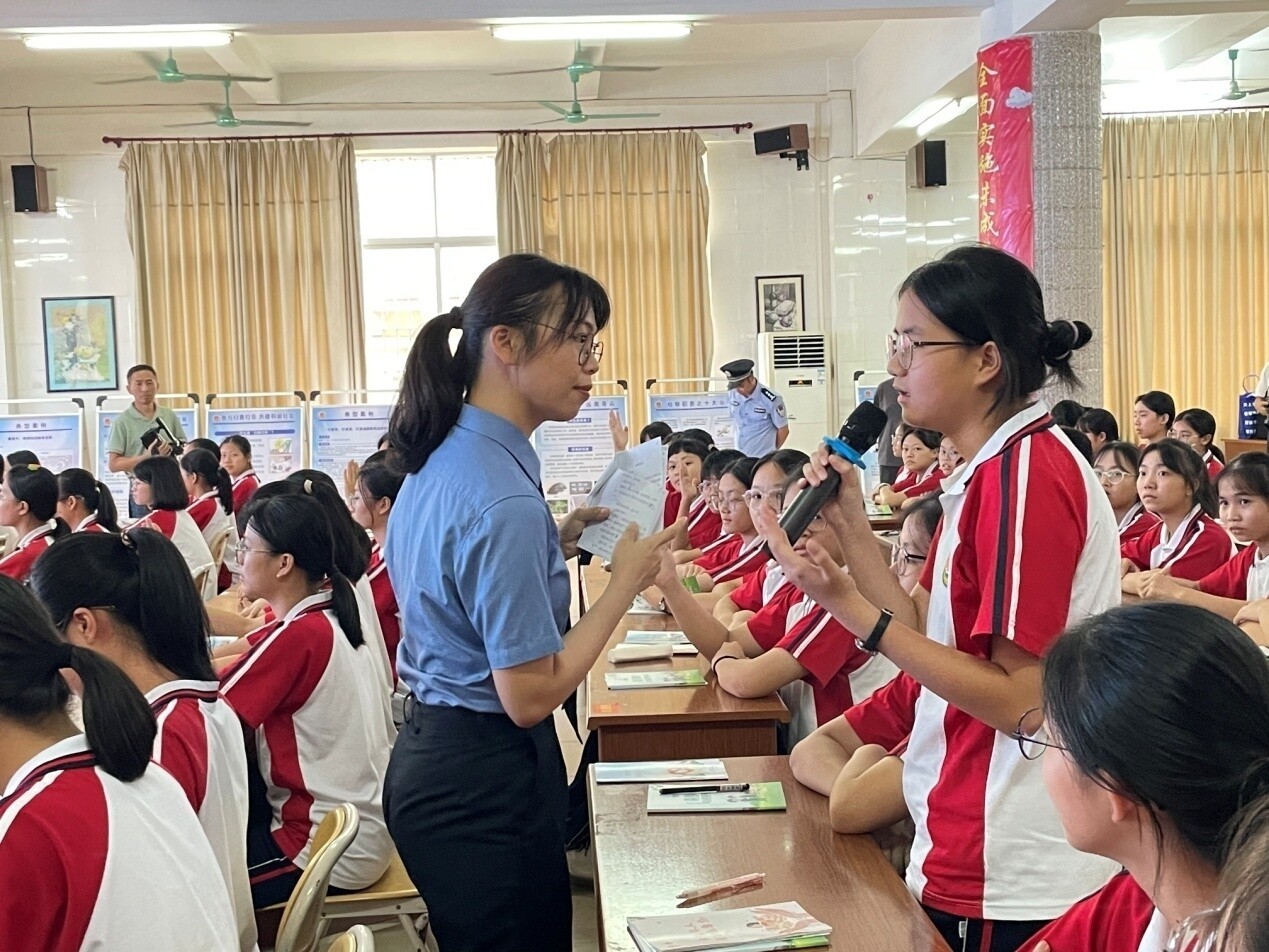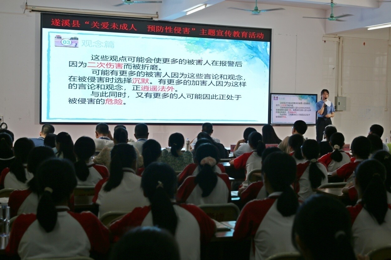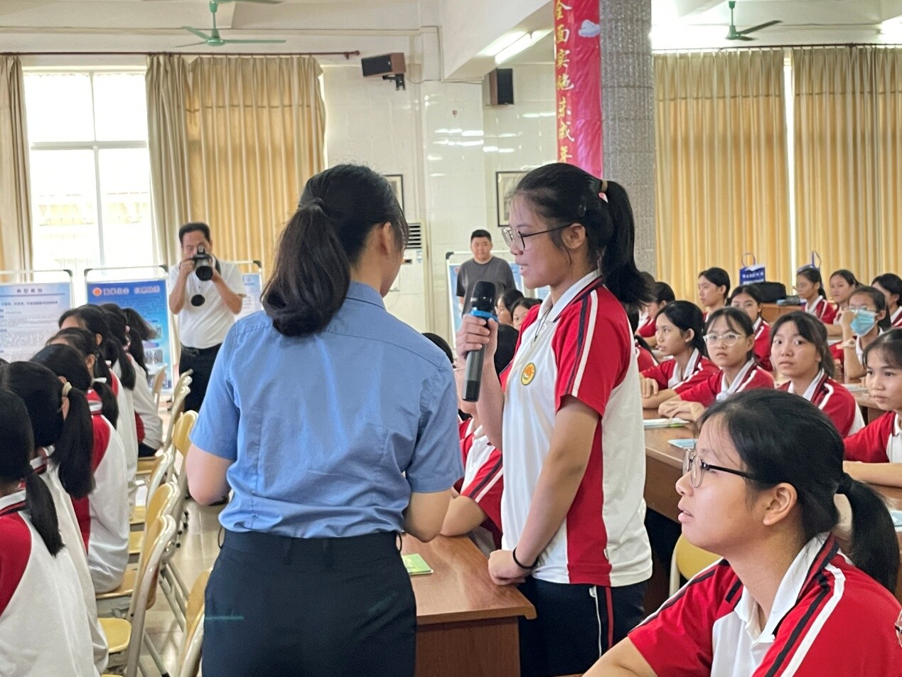 活動現(xiàn)場,遂溪縣人民檢察院未檢辦負(fù)責(zé)人、縣巾幗宣傳團(tuán)成員張卓琳作“關(guān)于性侵害,我們可能不知道的那些事”主題宣講,她用親切的語言通過具體案例、提問、觀看視頻、互動等形式,從“什么是性侵害”、“性侵害一般會在什么場景下發(fā)生”、“如何識別和防范性侵”、“萬一不幸遭受性侵害、我們該怎么做”、“法律對性侵行為的懲處”等相關(guān)知識進(jìn)行深入細(xì)致的講解,教會同學(xué)們預(yù)防性侵害和自我保護(hù)。生動形象、富有情趣的知識講座,深深吸引著同學(xué)們。他們或是全神貫注聽講,或是積極搶答,課堂氛圍濃郁活潑。