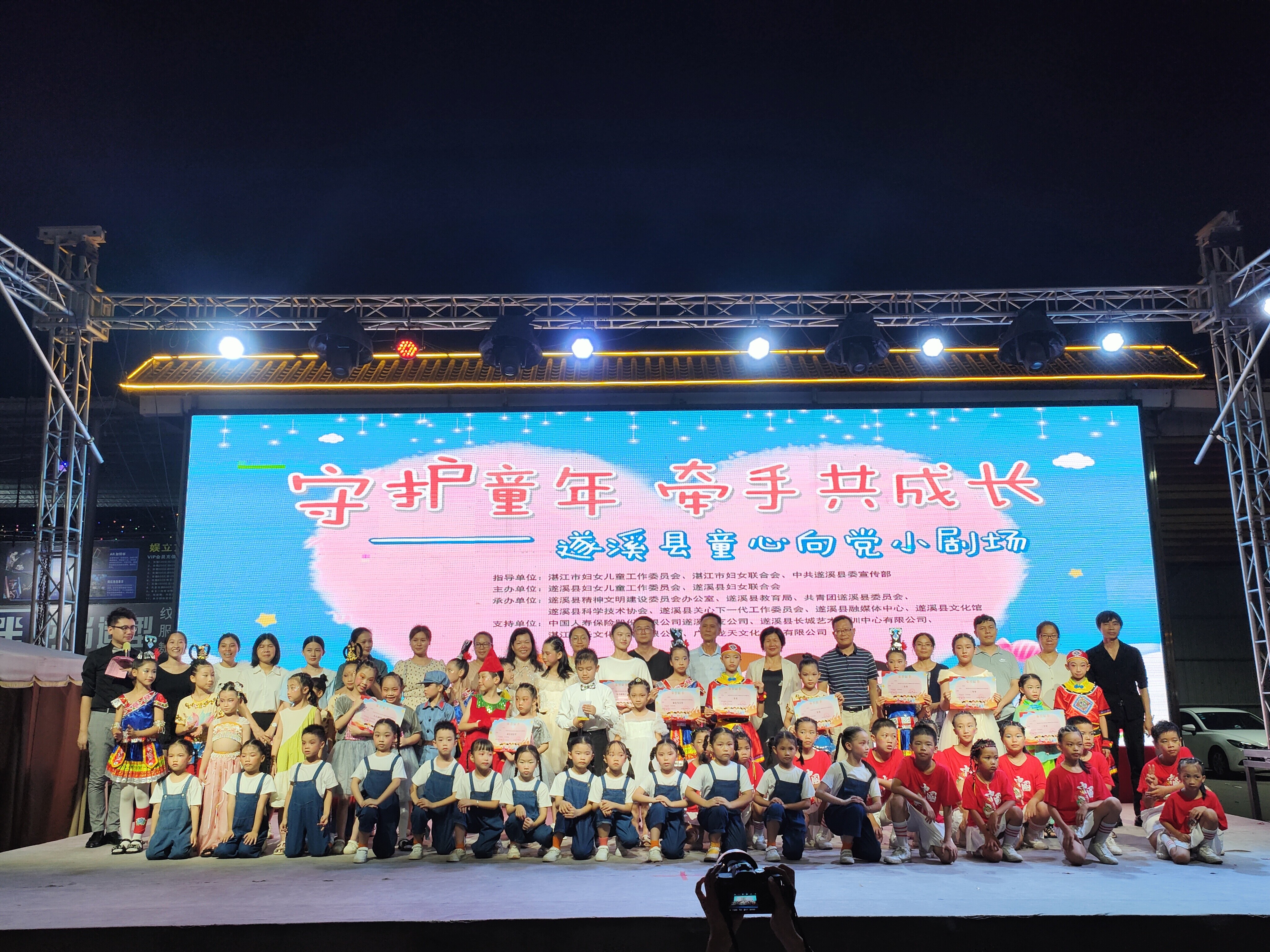 遂溪縣童心向黨小劇場由遂溪縣婦女兒童工作委員會、縣婦聯(lián)聯(lián)合主辦,縣文明辦、縣教育局、團縣委、縣科協(xié)、縣關(guān)工委、縣融媒體中心、縣文化館聯(lián)合承辦,中國人壽遂溪縣支公司、遂溪縣長城藝術(shù)培訓(xùn)中心有限公司、湛江于樂文化傳媒有限公司、廣東龍?zhí)煳幕瘋髅接邢薰疽矊υ摶顒咏o予了大力支持。
