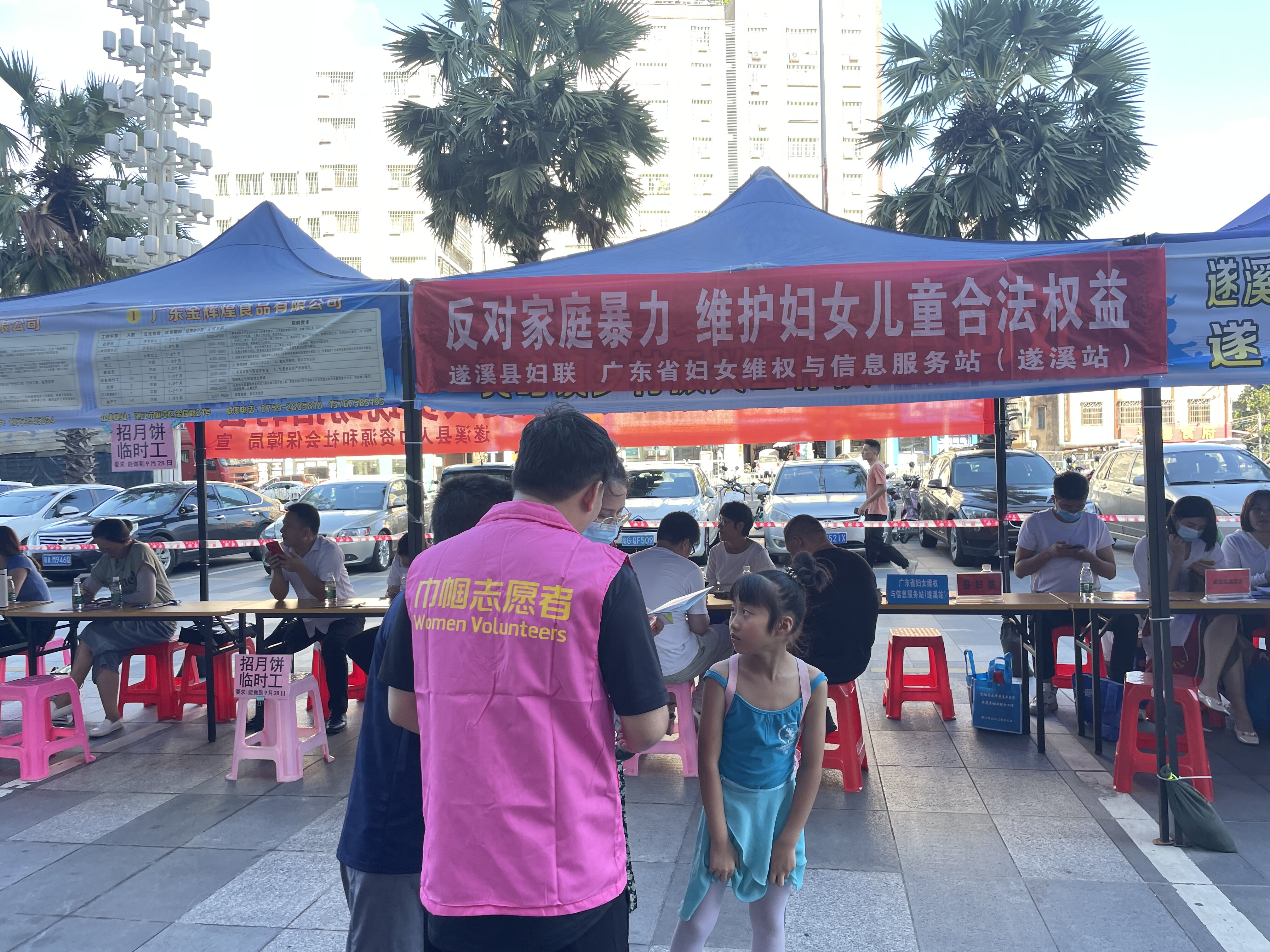 為了大力宣傳《反家庭暴力法》,切實預(yù)防和制止家庭暴力,進一步提高廣大婦女群眾反家庭暴力法律意識和維權(quán)能力,助推“平安遂溪”建設(shè)。2023年7月21日,遂溪縣婦聯(lián)、廣東省婦女維權(quán)與信息服務(wù)站(遂溪站)在遂城街道全豐中央廣場開展了“反對家庭暴力,維護婦女兒童合法權(quán)益”戶外宣傳活動,吸引400余群眾參與,共發(fā)放各類宣傳資料400余份。