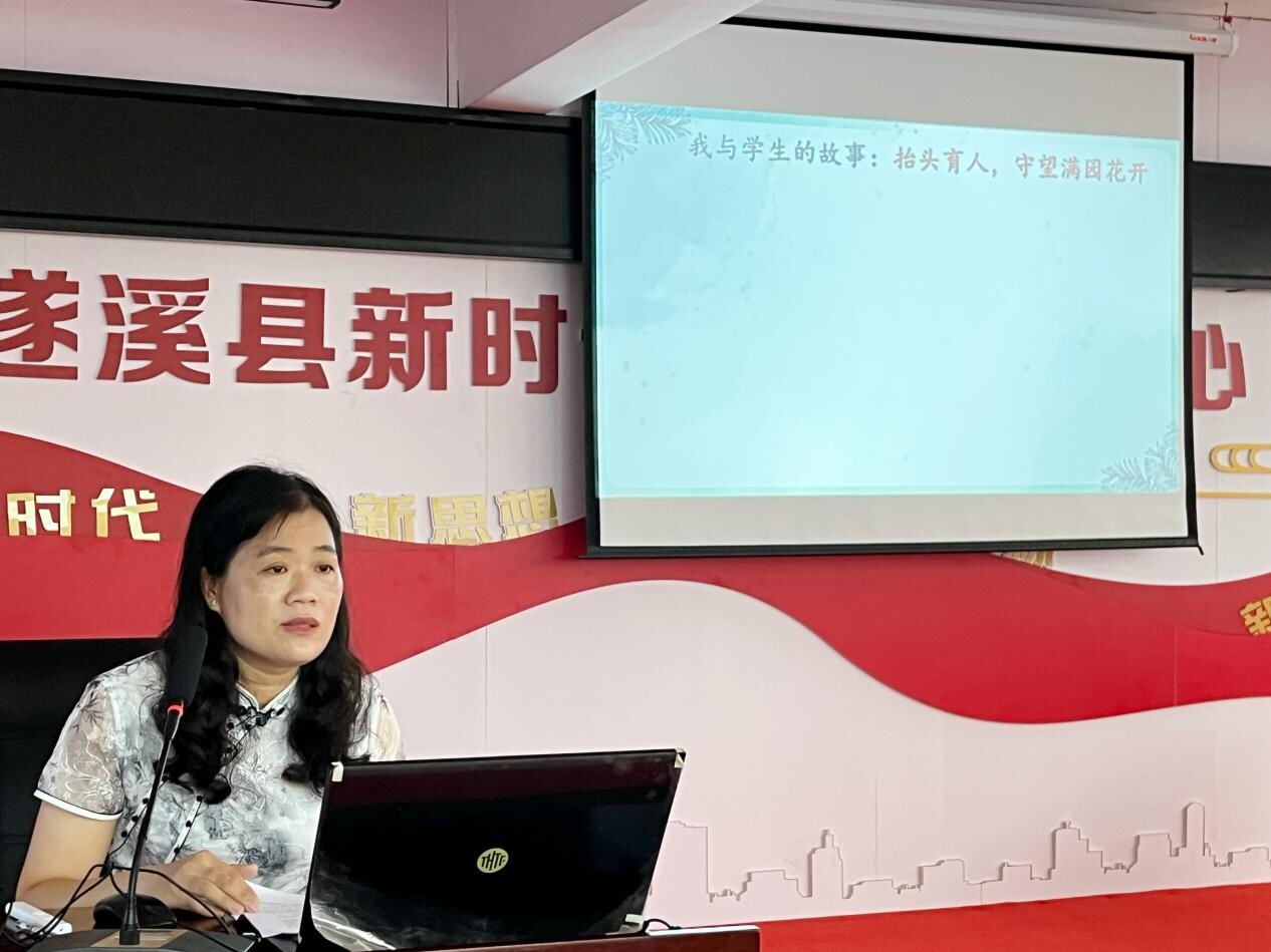 (遂溪縣大成中學(xué)教師吳柳鳳在分享故事)