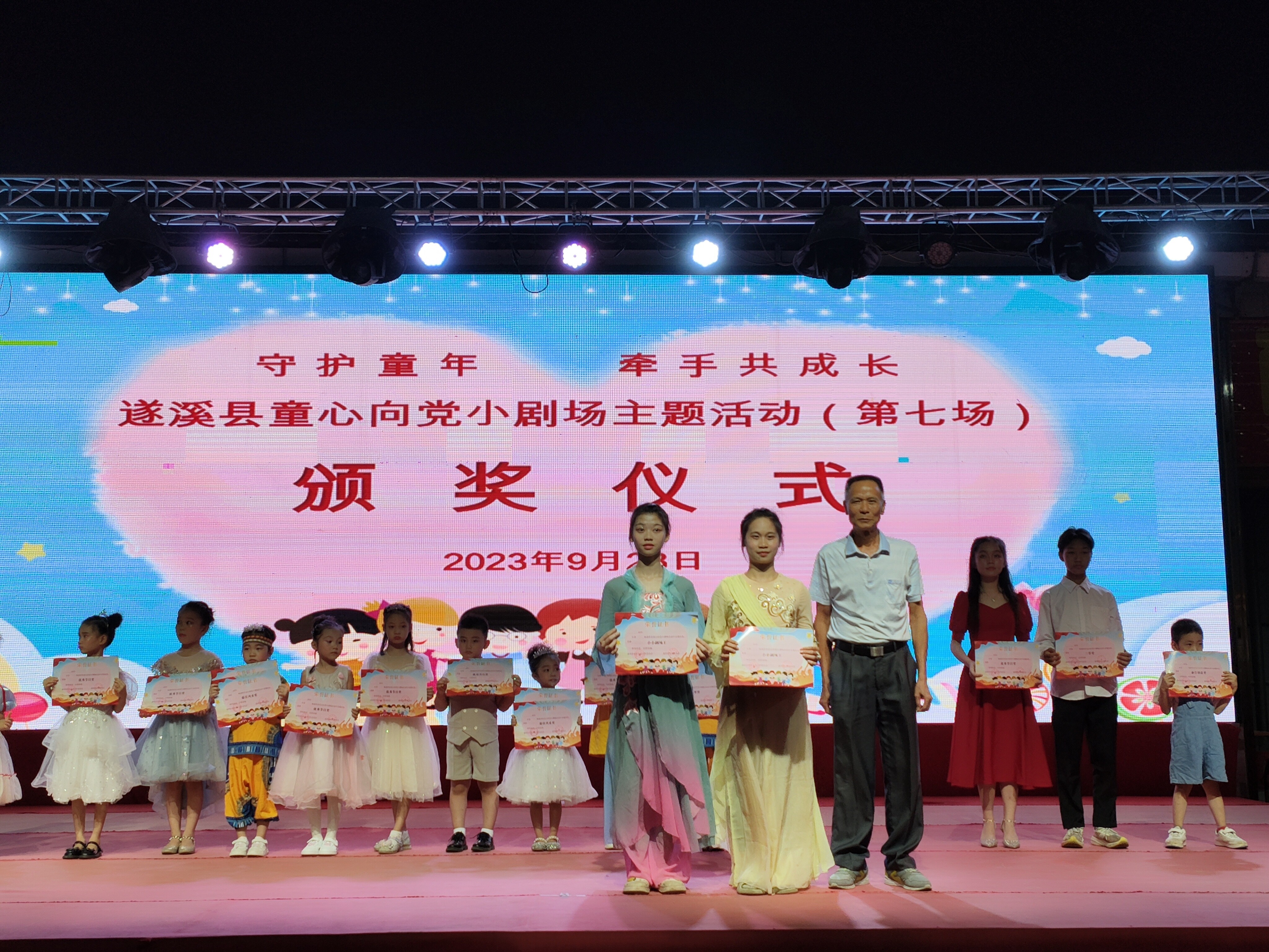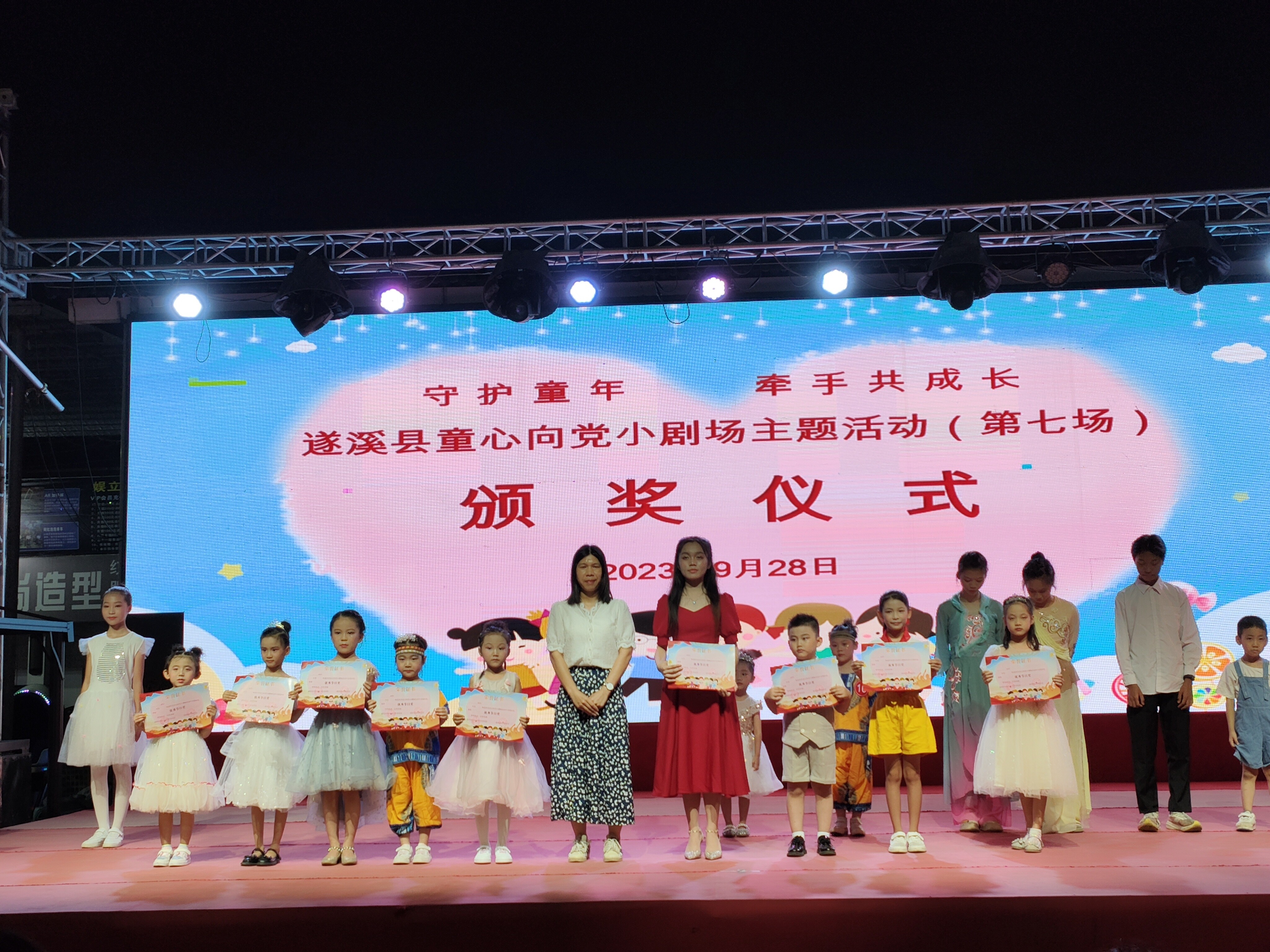 在中秋節(jié)和國慶節(jié)即將來臨之際,2023年9月28日晚,遂溪縣童心向黨小劇場第七場活動在遂溪縣醒獅美食廣場內(nèi)舉行,讓全縣人民在節(jié)慶中感受紅色文化魅力,進一步深化未成年人思想道德建設工作,引領廣大少年兒童聽黨話、感黨恩、跟黨走,助力廣東省兒童友好示范縣創(chuàng)建工作。
