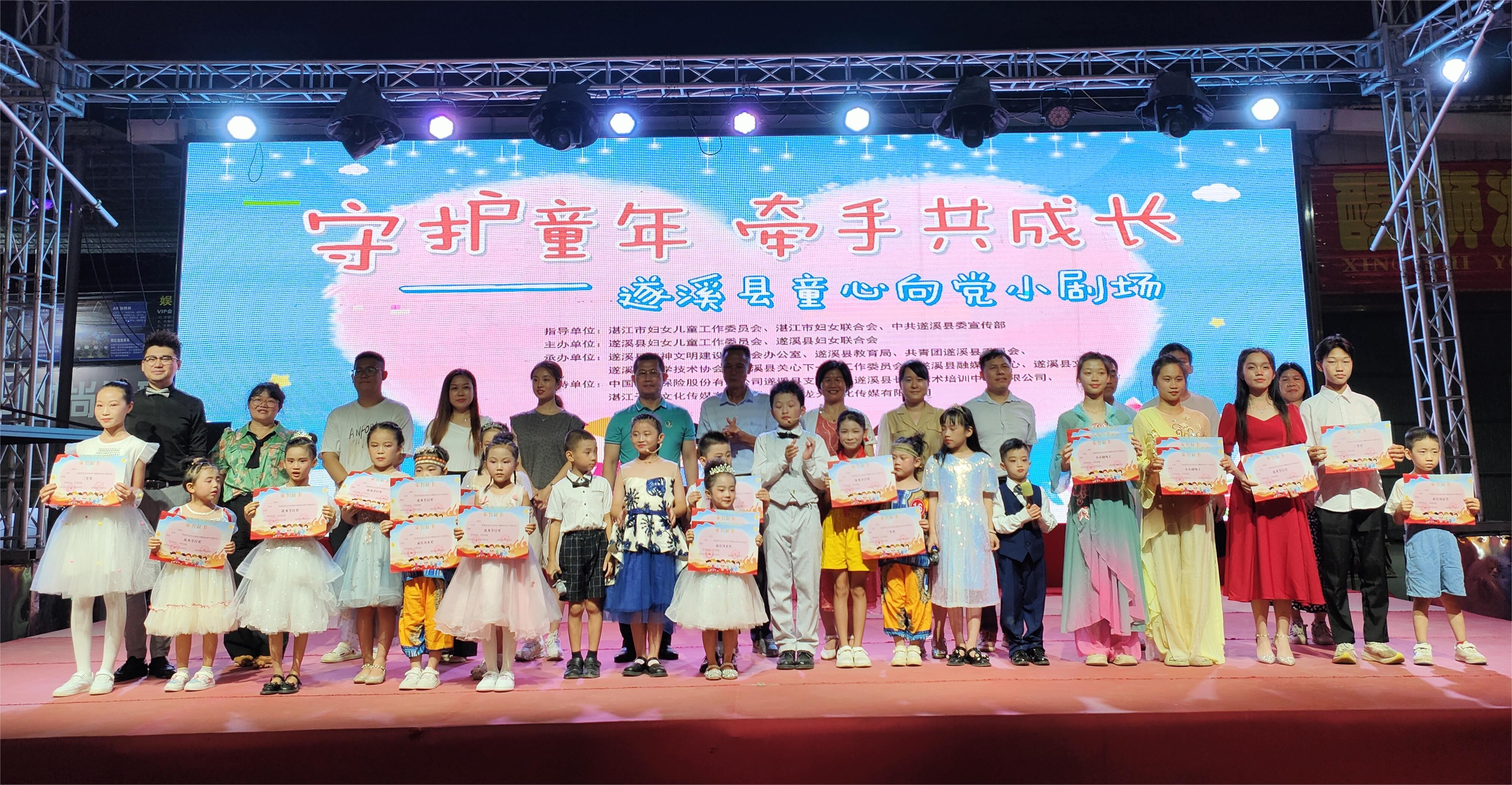 遂溪縣童心向黨小劇場由遂溪縣婦女兒童工作委員會、遂溪縣婦女聯(lián)合會聯(lián)合主辦,遂溪縣精神文明建設委員會辦公室、遂溪縣教育局、共青團遂溪縣委員會、遂溪縣科學技術協(xié)會、遂溪縣關心下一代工作委員會、遂溪縣融媒體中心、遂溪縣文化館聯(lián)合承辦,中國人壽保險有限公司遂溪縣支公司、遂溪縣長城藝術培訓中心有限公司、湛江于樂文化傳媒有限公司、廣東龍?zhí)煳幕瘋髅接邢薰疽矊υ摶顒咏o予了大力支持。