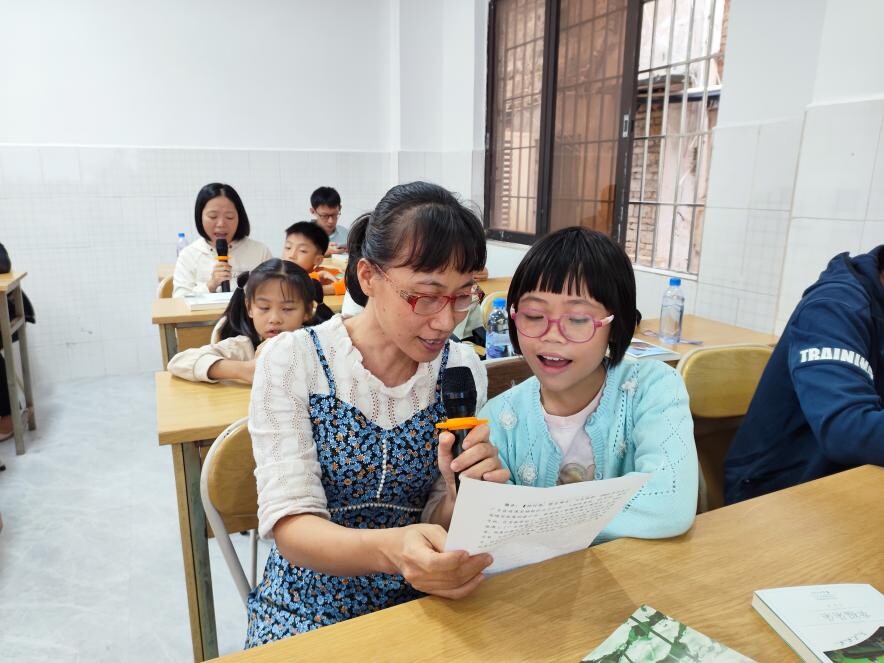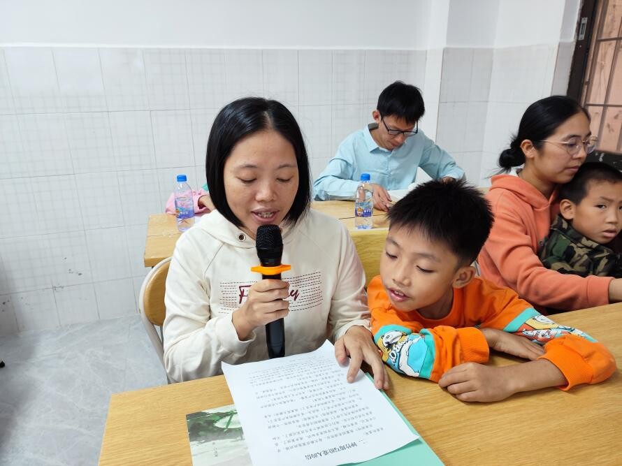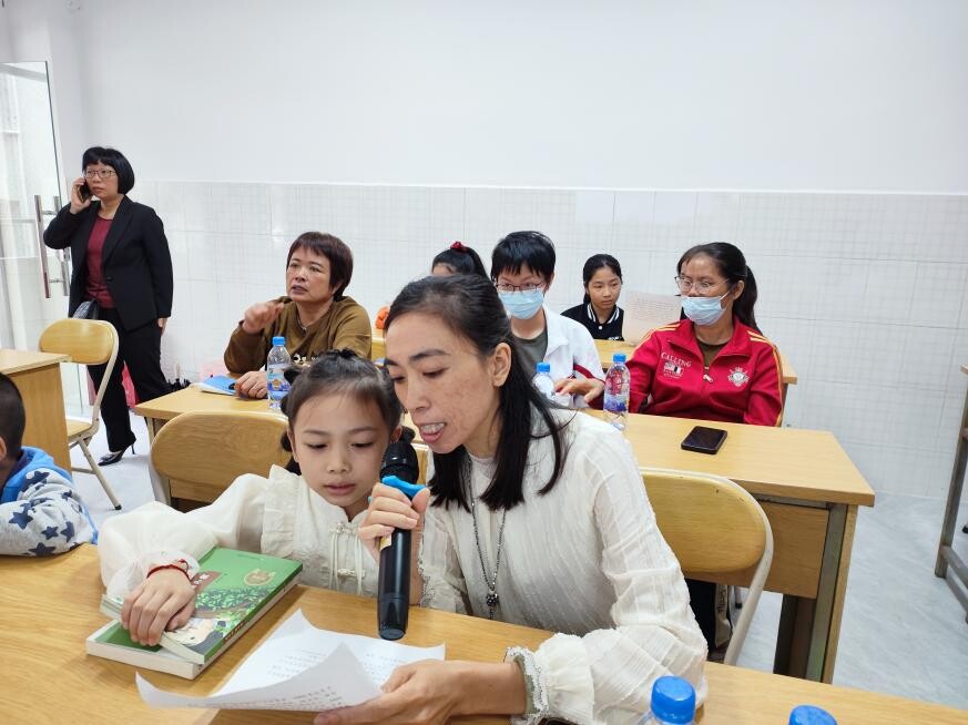 (鄧藍(lán)鈺家庭在活動(dòng)現(xiàn)場(chǎng)進(jìn)行親子誦讀表演)