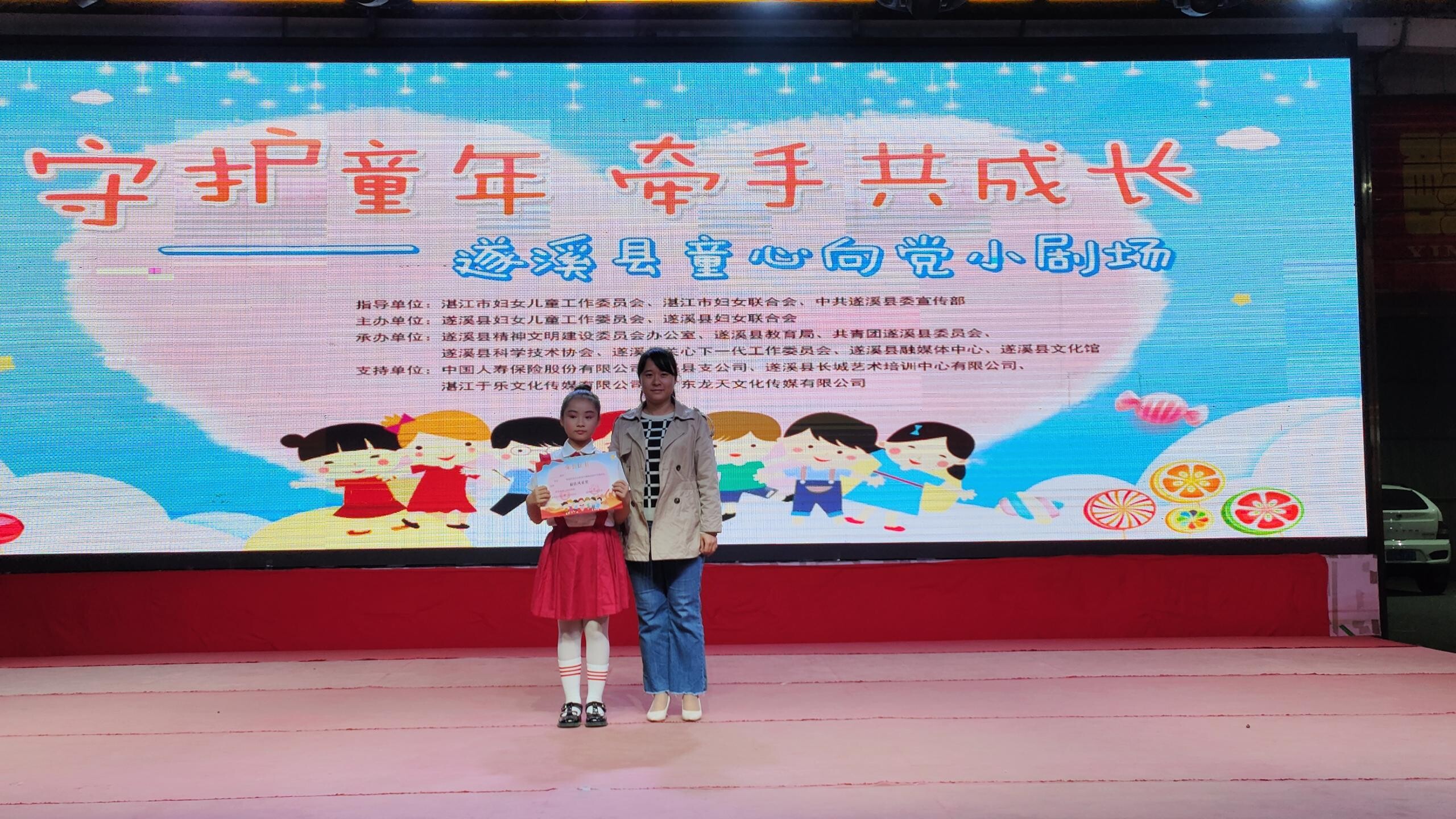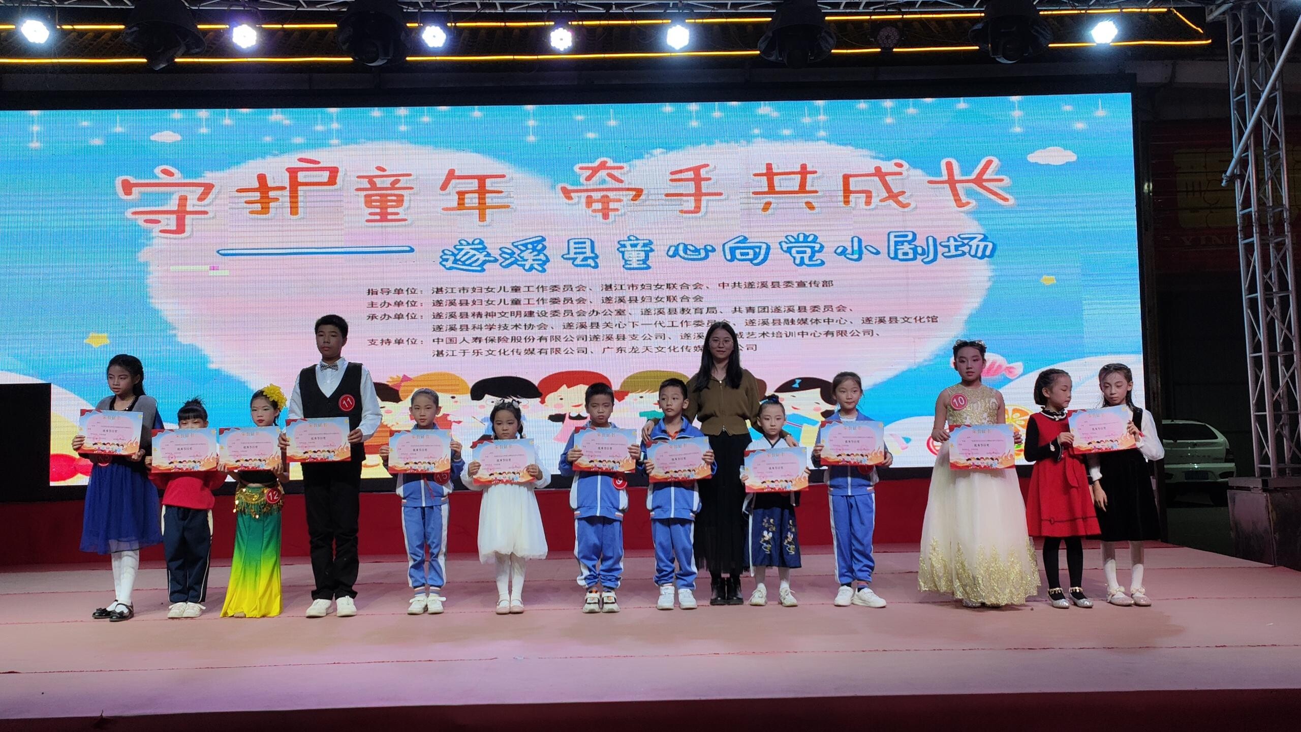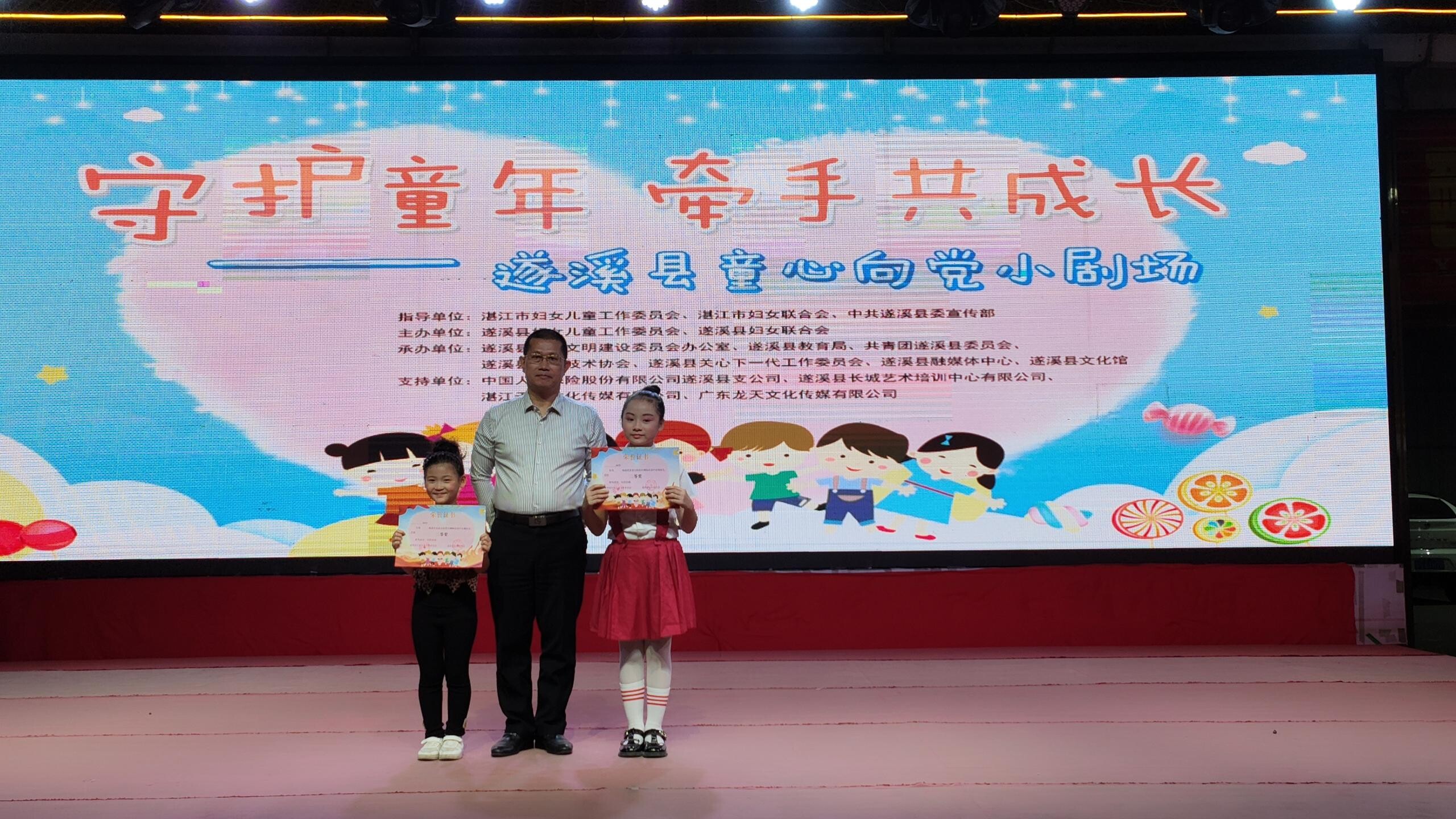 遂溪縣童心向黨小劇場由遂溪縣婦女兒童工作委員會、遂溪縣婦女聯(lián)合會聯(lián)合主辦,遂溪縣精神文明建設(shè)委員會辦公室、遂溪縣教育局、共青團遂溪縣委員會、遂溪縣科學技術(shù)協(xié)會、遂溪縣關(guān)心下一代工作委員會、遂溪縣融媒體中心、遂溪縣文化館聯(lián)合承辦,中國人壽保險有限公司遂溪縣支公司、遂溪縣長城藝術(shù)培訓中心有限公司、湛江于樂文化傳媒有限公司、廣東龍?zhí)煳幕瘋髅接邢薰疽矊υ摶顒咏o予了大力支持。