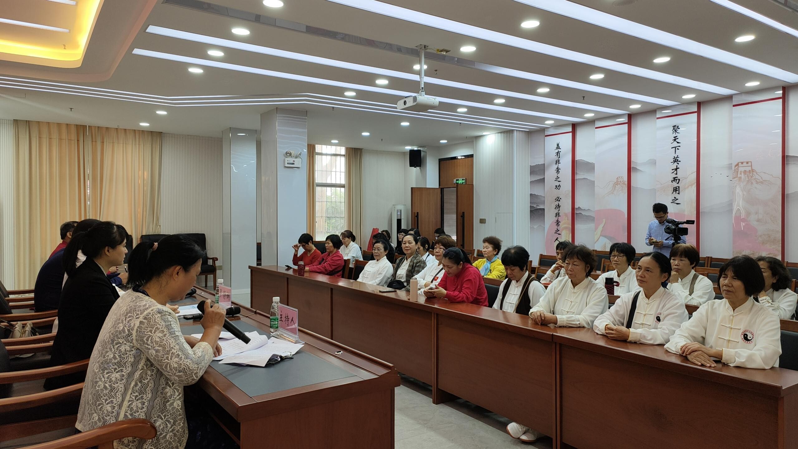 遂溪縣文廣旅體局副局長袁耀講話,他對陳式太極拳協(xié)會婦女聯(lián)合會的成立及當選的主席、副主席、執(zhí)委委員表示熱烈的祝賀;向一直以來支持、關(guān)心遂溪全民健身運動的婦女同胞表示衷心的感謝。他希望陳式太極拳協(xié)會婦女聯(lián)合會充分發(fā)揮橋梁紐帶作用,廣泛溝通聯(lián)系太極拳婦女愛好者,引導(dǎo)她們聽黨話、跟黨走,凝聚巾幗力量,為遂溪婦女事業(yè)和體育事業(yè)高質(zhì)量發(fā)展作出應(yīng)有貢獻。