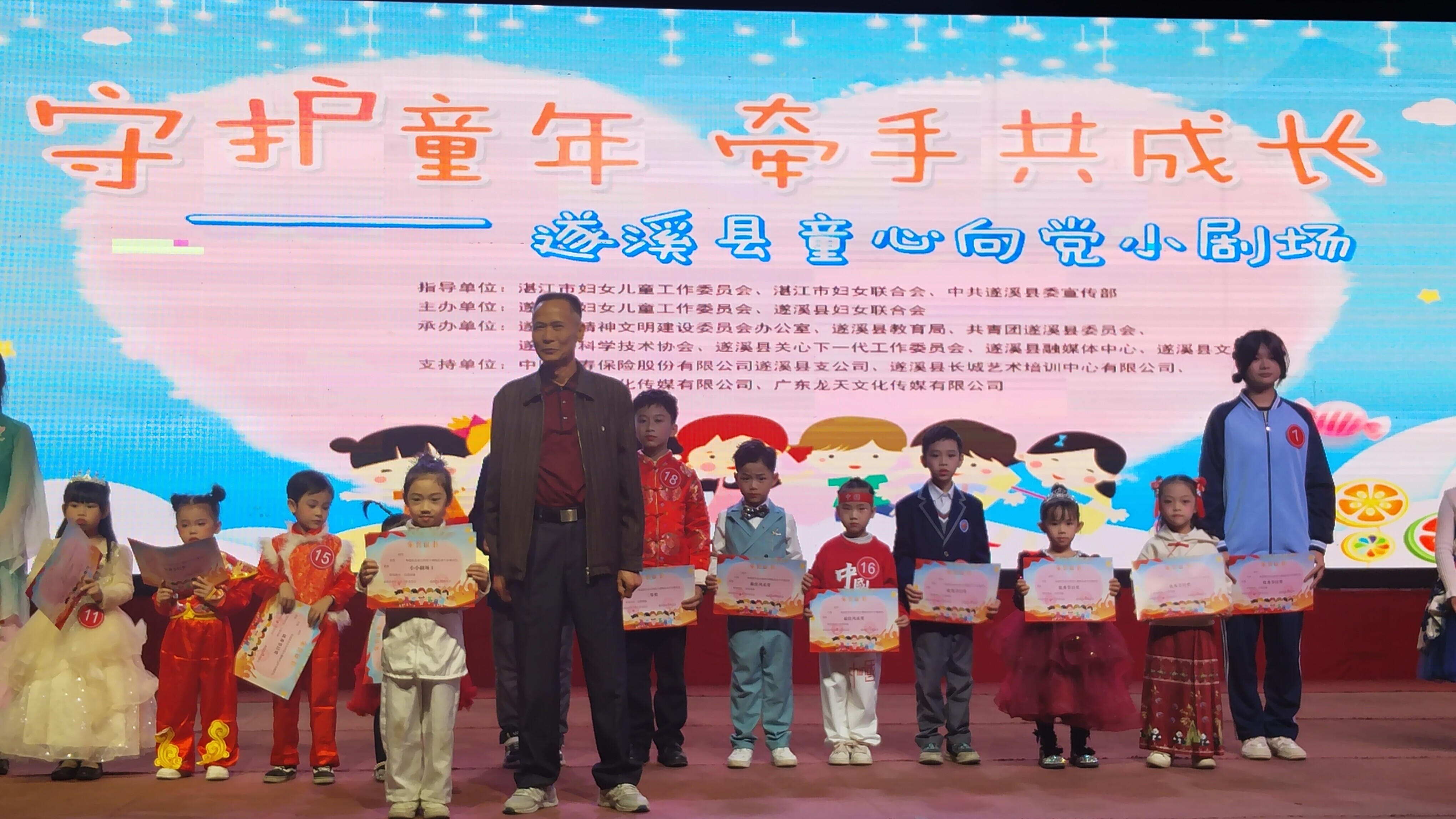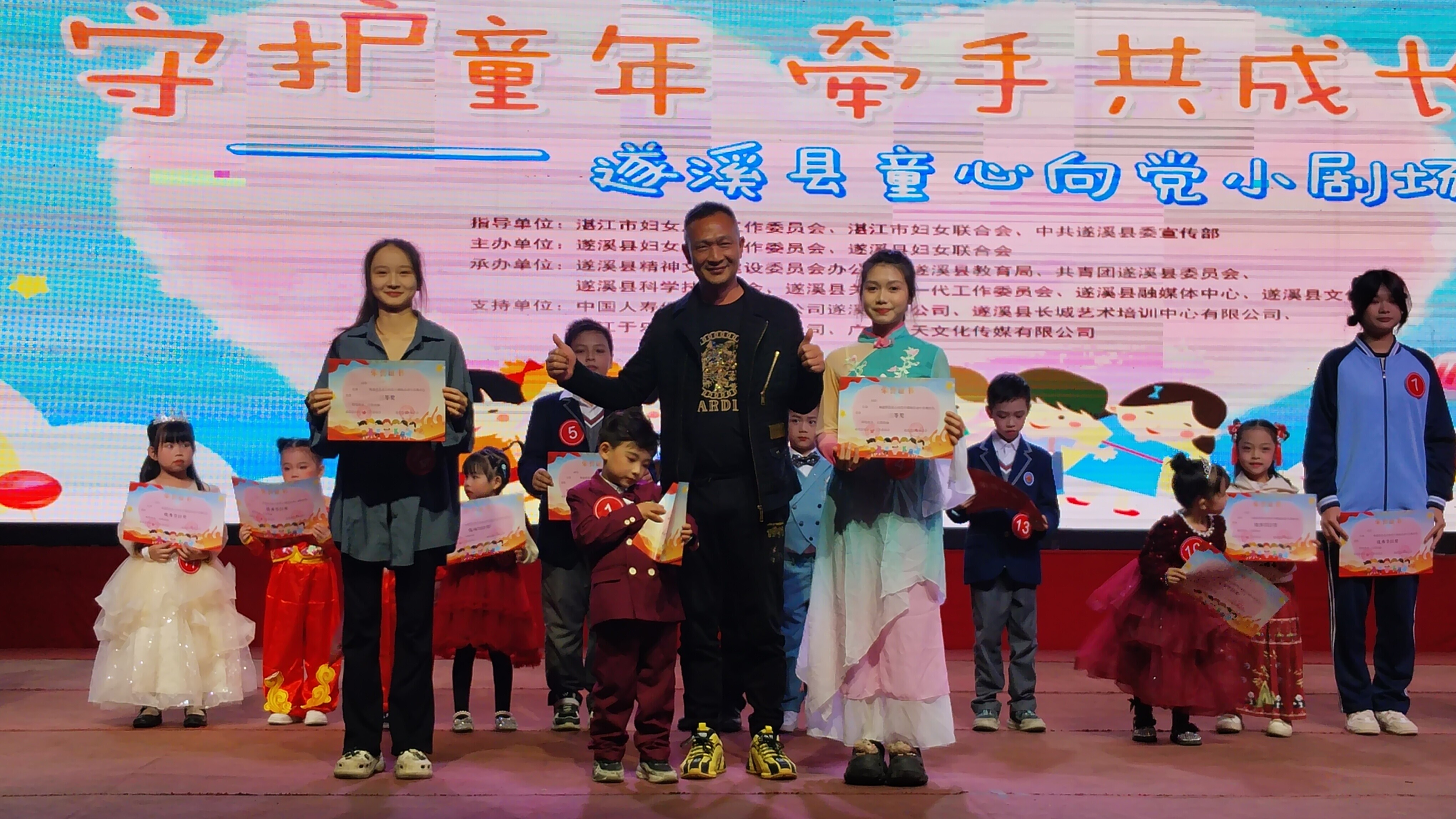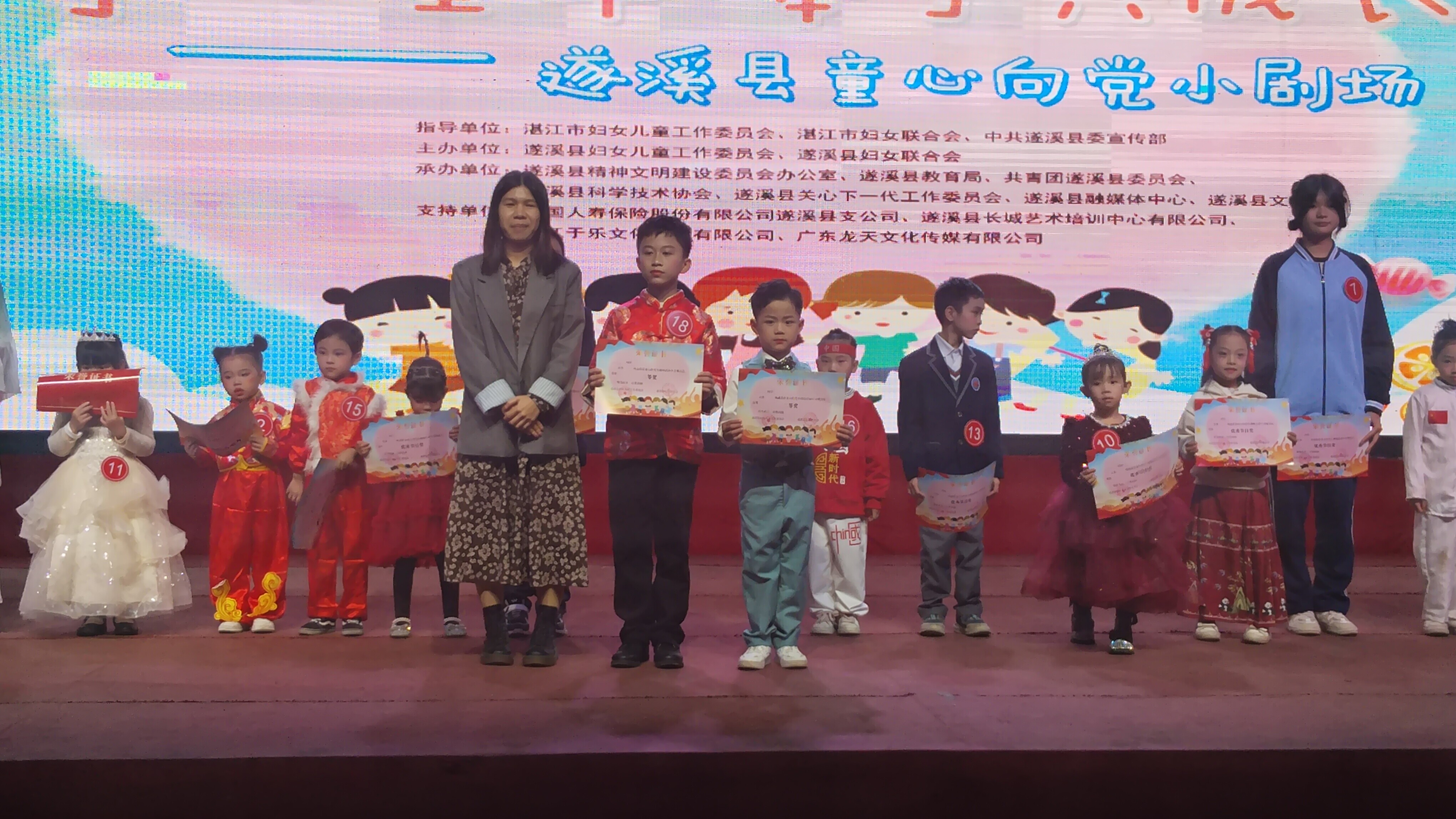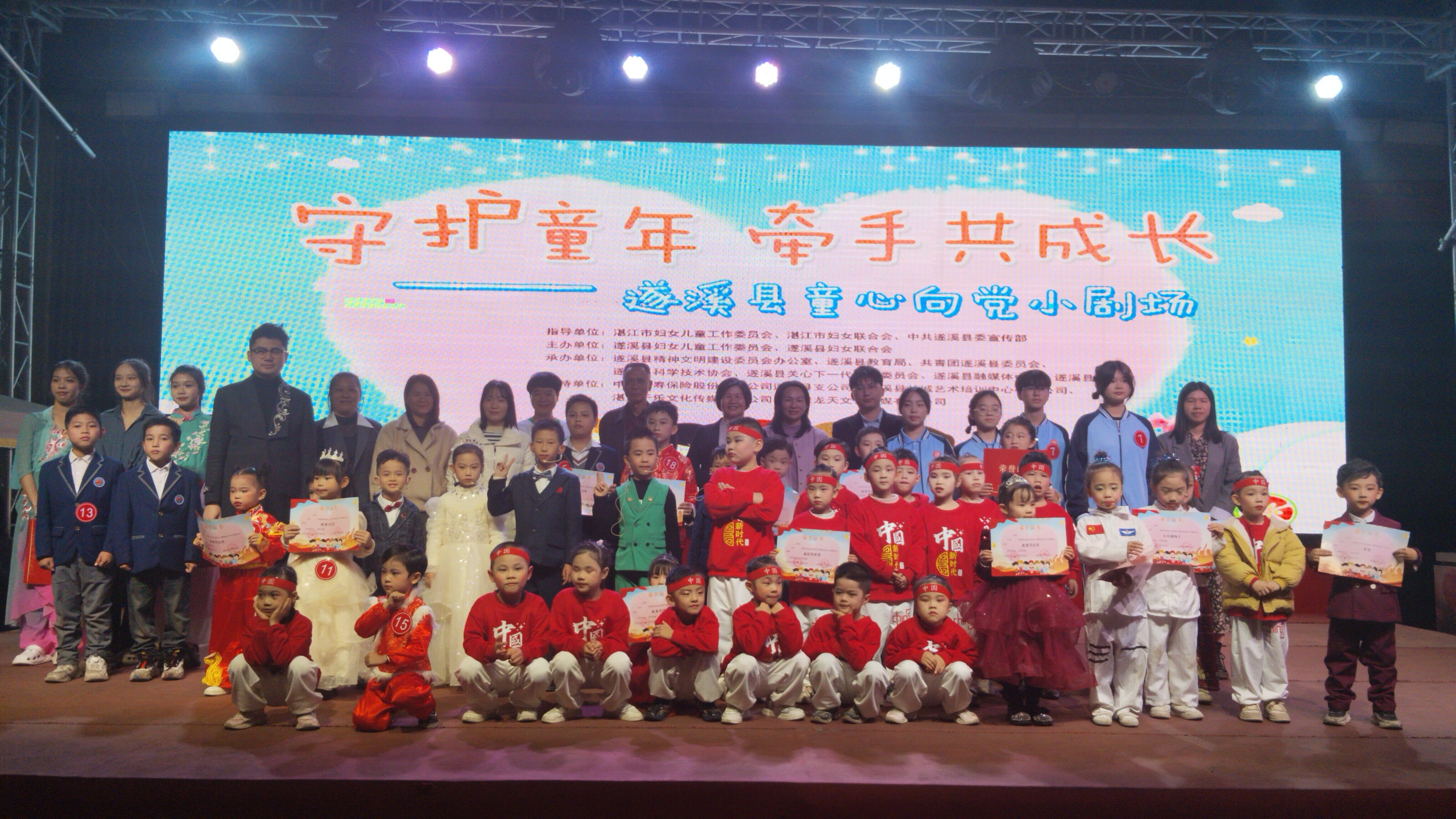 遂溪縣童心向黨小劇場由遂溪縣婦女兒童工作委員會、遂溪縣婦女聯(lián)合會聯(lián)合主辦,遂溪縣精神文明建設(shè)委員會辦公室、遂溪縣教育局、共青團遂溪縣委員會、遂溪縣科學(xué)技術(shù)協(xié)會、遂溪縣關(guān)心下一代工作委員會、遂溪縣融媒體中心、遂溪縣文化館聯(lián)合承辦,中國人壽保險有限公司遂溪縣支公司、遂溪縣長城藝術(shù)培訓(xùn)中心有限公司、湛江于樂文化傳媒有限公司、廣東龍?zhí)煳幕瘋髅接邢薰疽矊υ摶顒咏o予了大力支持。