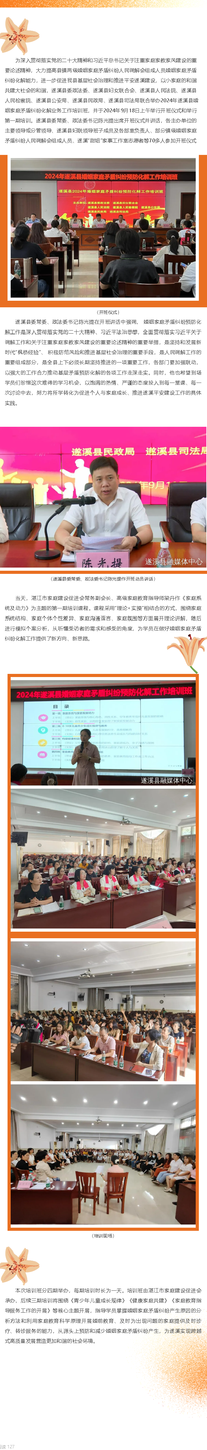著力婚調(diào)人才培養(yǎng)——遂溪縣舉辦2024年婚姻家庭矛盾糾紛預(yù)防化解工作業(yè)務(wù)培訓(xùn)班