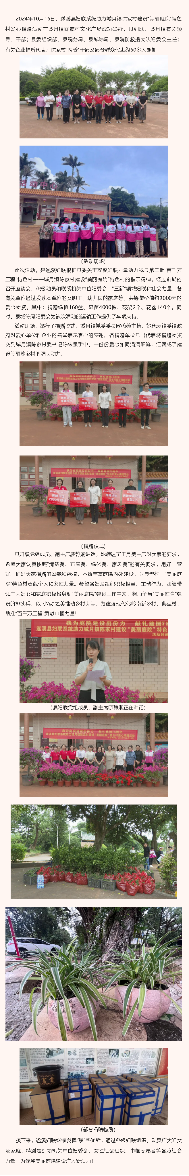 我為庭院建設(shè)出份力 獻(xiàn)禮新中國(guó)成立75周年——遂溪縣婦聯(lián)系統(tǒng)成功舉辦助力城月鎮(zhèn)陳家村建設(shè)“美麗庭院”特色村愛(ài)心捐贈(zèng)活動(dòng)
