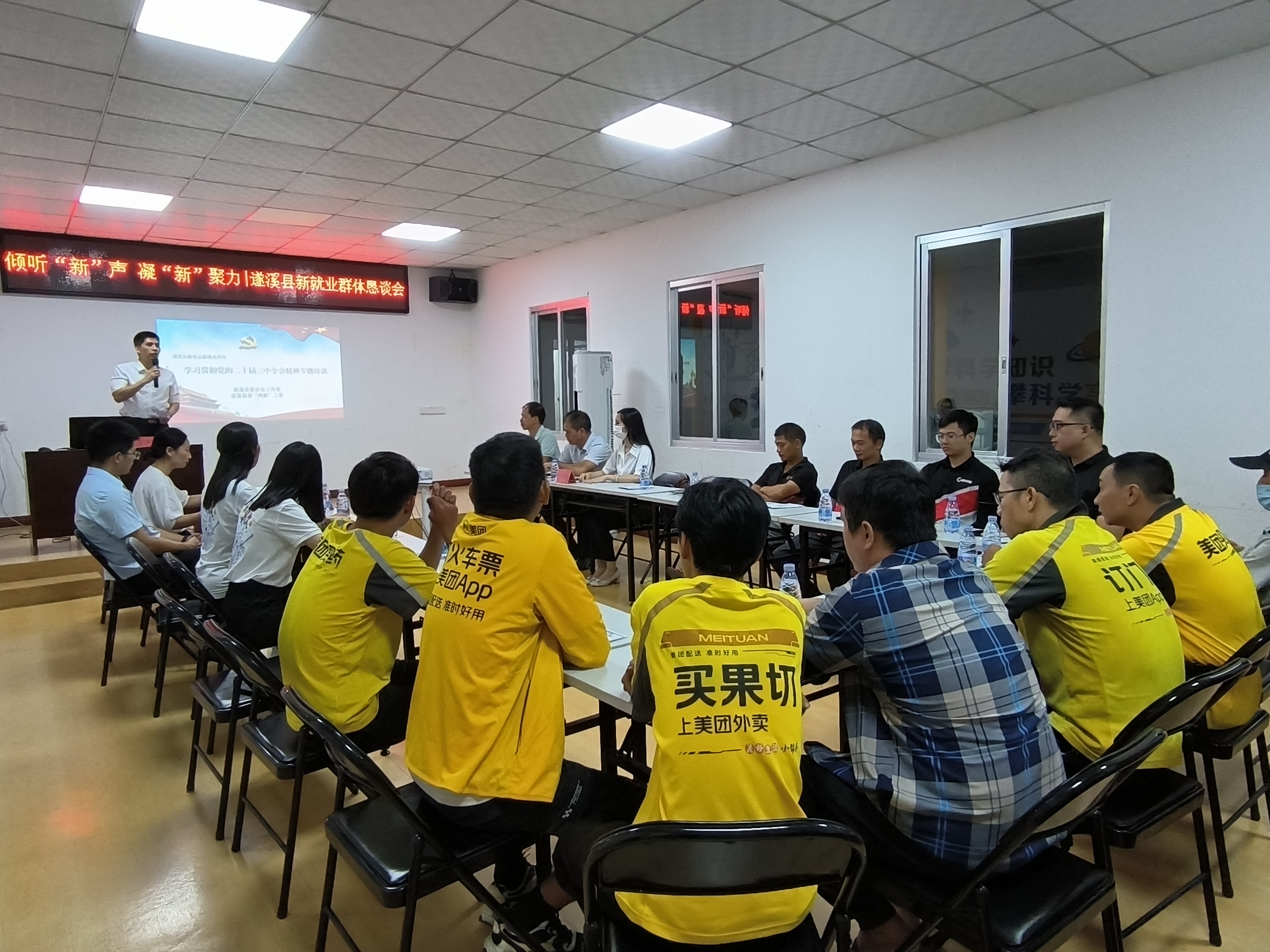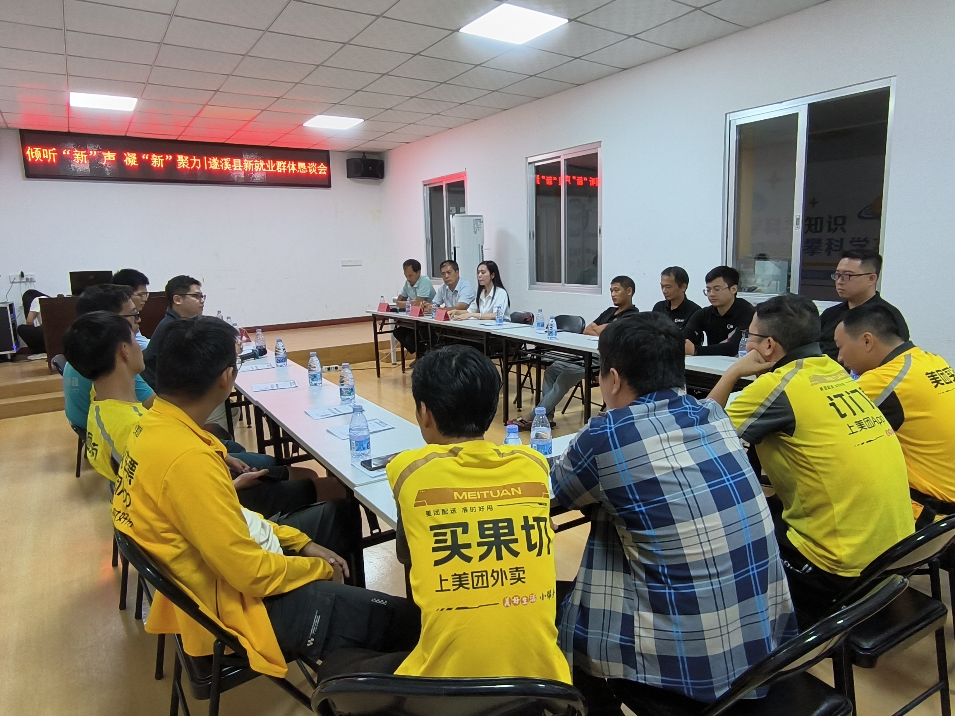 (縣委社工部、縣人社局、團縣委、遂城街道等有關(guān)負責(zé)同志與新就業(yè)群體代表拉家常、談心事)