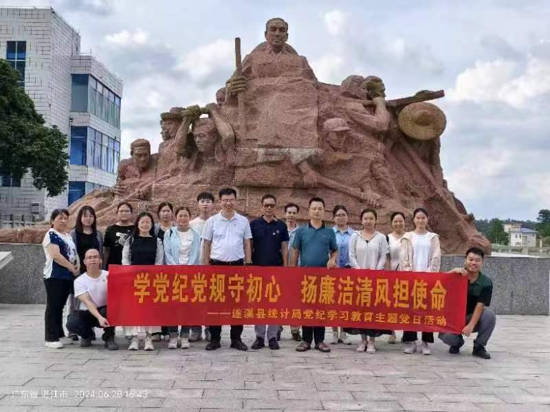 6月28日,遂溪縣統(tǒng)計局黨組書記、局長陳德帶領(lǐng)局全體黨員干部到雷州青年運河紅色教育基地,開展“學(xué)黨紀黨規(guī)守初心 揚廉潔清風(fēng)擔(dān)使命”黨紀學(xué)習(xí)教育主題黨日活動。