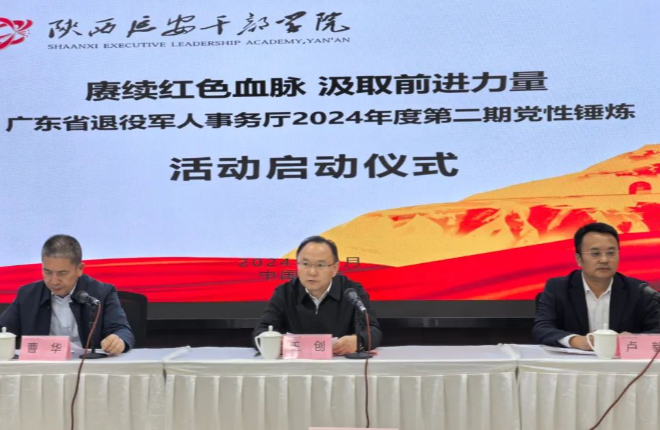 為鞏固拓展黨紀學習教育成果,持續(xù)強化廳系統(tǒng)黨員干部黨性修養(yǎng)、作風涵養(yǎng)。近日,廣東省退役軍人事務廳在革命圣地延安開展第二期黨性錘煉活動。廳黨組書記、廳長王創(chuàng)在啟動儀式上作動員講話,廳黨組成員、駐廳紀檢監(jiān)察組組長唐永漢,廳黨組成員、副廳長張學君,駐廳紀檢監(jiān)察組二級巡視員賴金泉出席啟動儀式并參加活動。