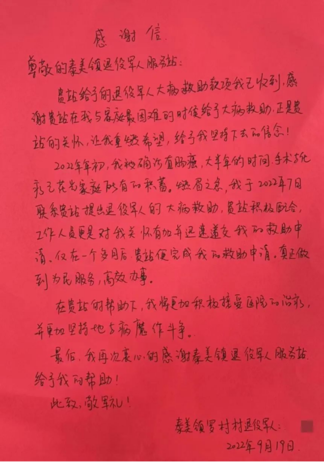 “在我最困難、最無助的時候,黨和政府沒有忘記我,是退役軍人事務(wù)部門伸出援手,這筆救助金不僅挽救了我的生命,更讓我感受到了作為退役軍人的榮譽感和歸屬感!”病床前吳先生含淚說道。揭陽市退役軍人吳先生2024年底確診心血管疾病——“主動脈夾層 A 型” ,高昂手術(shù)費使家庭陷入困境。鎮(zhèn)退役軍人服務(wù)站走訪發(fā)現(xiàn)后,立即啟動幫扶機制,協(xié)助其申請廣東省退役軍人應(yīng)急救助資金,最終8.41萬元救助金快速獲批,有效緩解了經(jīng)濟壓力。