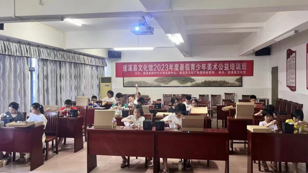 遂溪縣文化館為充分發(fā)揮文化館的公益服務(wù)職能,積極推動(dòng)群眾文化的健康發(fā)展,完善公共文化服務(wù)體系建設(shè),讓群眾享受在家門口的優(yōu)質(zhì)公共文化服務(wù),提升群眾文化綜合素質(zhì),7月11日—8月28日,遂溪縣文化館開展了青少年暑假免費(fèi)公益培訓(xùn)班,本期組織陣地培訓(xùn)有少兒美術(shù)、少兒書法、少兒舞蹈藝術(shù)課程。