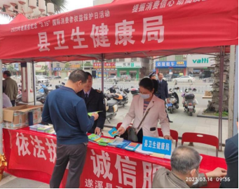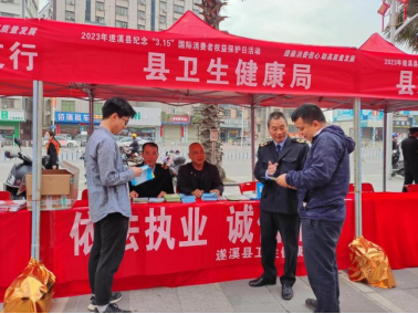 為切實維護(hù)消費者合法權(quán)益,確保人民群眾的身體健康,提高廣大消費者自我保護(hù)意識,促進(jìn)生產(chǎn)經(jīng)營者依法執(zhí)業(yè)誠信服務(wù),進(jìn)一步優(yōu)化營商環(huán)境,提高服務(wù)質(zhì)量。2023年3月14日至15日,遂溪縣衛(wèi)生健康局與縣衛(wèi)生監(jiān)督所以“3·15”消費者權(quán)益日宣傳活動為契機(jī),聯(lián)合開展了以“依法執(zhí)業(yè) 誠信服務(wù)”為主題的宣傳活動。