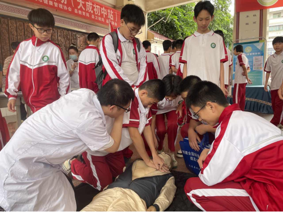 心肺復(fù)蘇作為院前急救的基本急救技術(shù),在關(guān)鍵時刻能延續(xù)患者的生命,不僅醫(yī)護人員必須掌握,還應(yīng)當大力的推廣普及。為進一步強化和普及正確的心肺復(fù)蘇急救知識,為遂溪師生健康保駕護航,2023年4月13日下午,遂溪縣衛(wèi)生健康系統(tǒng)在遂溪縣大成初中開展應(yīng)急救護技能培訓(xùn)--心肺復(fù)蘇進校園活動。積極傳播心肺復(fù)蘇理念和急救技能、普及心肺復(fù)蘇等急救常識,培養(yǎng)師生應(yīng)急安全意識,提高心肺復(fù)蘇技術(shù)操作能力。