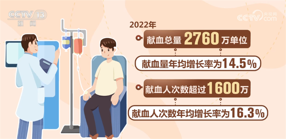 國家衛(wèi)生健康委相關(guān)負責(zé)人表示,我國無償獻血工作目前已形成了“政府主導(dǎo)、部門協(xié)作、社會支持、公眾參與”的格局,無償獻血制度全面建立,血液管理制度和規(guī)范標準體系不斷完善。全國建立了橫向到邊、縱向到底的血站采供血服務(wù)體系。全國共建設(shè)血站453家,形成以省級血液中心為龍頭、地市級中心血站為主體、中心血庫為補充的血站服務(wù)體系。我國血液安全保障水平大幅提升。全國無償獻血人次數(shù)和獻血量實現(xiàn)20多年持續(xù)增長,千人口獻血率由1998年的4.8提升至2022年11.5,2022年獻血總量2760萬單位,獻血量年均增長率為14.5%。2022年獻血人次數(shù)超過1600萬,獻血人次數(shù)年均增長率為16.3%。今年1—5月,獻血人次數(shù)和獻血量比去年同期增長7.7%和6%。