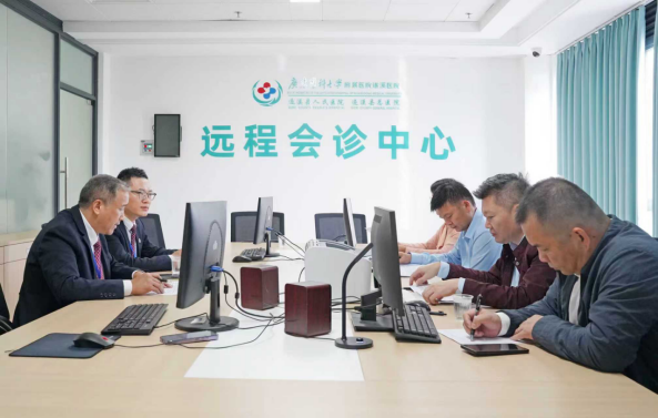隨后進(jìn)行座談,人民醫(yī)院院長(zhǎng)鄧烈華匯報(bào)了三級(jí)醫(yī)院創(chuàng)建在學(xué)科建設(shè)、醫(yī)療服務(wù)能力提升等方面取得的階段性成果,以及緊密型縣域醫(yī)共體建設(shè)在資源共享、雙向轉(zhuǎn)診等方面具體實(shí)踐的情況匯報(bào)。據(jù)了解,遂溪縣在建設(shè)緊密型縣域醫(yī)共體方面進(jìn)展順利,一是人員統(tǒng)籌方面,已實(shí)現(xiàn)對(duì)全縣15家鎮(zhèn)衛(wèi)生院的全覆蓋派駐,并建立醫(yī)務(wù)人員半年輪換機(jī)制;二是轉(zhuǎn)診服務(wù)方面,醫(yī)共體綜合事務(wù)管理中心運(yùn)行穩(wěn)定,累計(jì)完成上轉(zhuǎn)患者1000余人次、下轉(zhuǎn)300余人次;三是技術(shù)幫扶方面,2025年上半年協(xié)助鎮(zhèn)衛(wèi)生院開展新技術(shù)70余項(xiàng),推動(dòng)3家衛(wèi)生院實(shí)現(xiàn)檢查檢驗(yàn)數(shù)據(jù)互聯(lián)互通;四是??平ㄔO(shè)方面,血液凈化中心建設(shè)穩(wěn)步推進(jìn),創(chuàng)傷救治培訓(xùn)、胸痛單元建設(shè)等工作取得實(shí)質(zhì)性進(jìn)展。