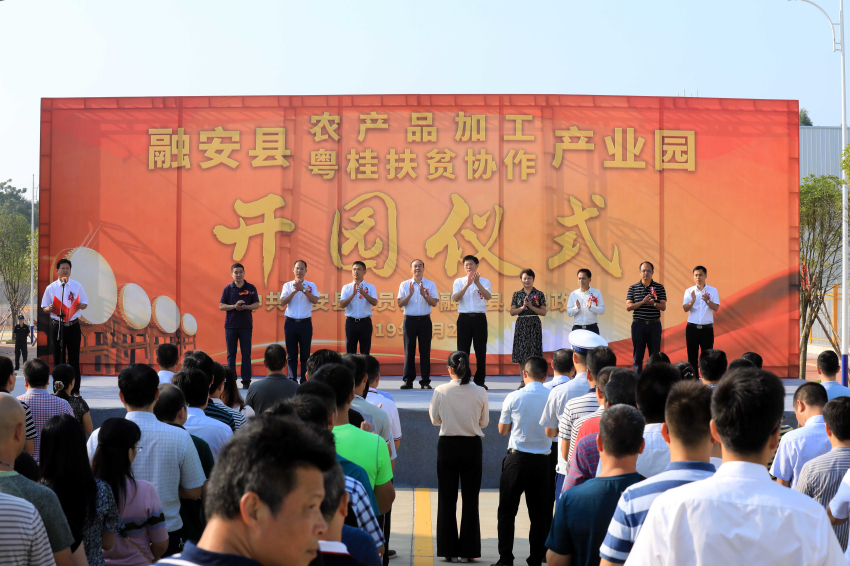 融安縣農(nóng)產(chǎn)品加工暨粵桂扶貧協(xié)作產(chǎn)業(yè)園開園儀式現(xiàn)場(chǎng)